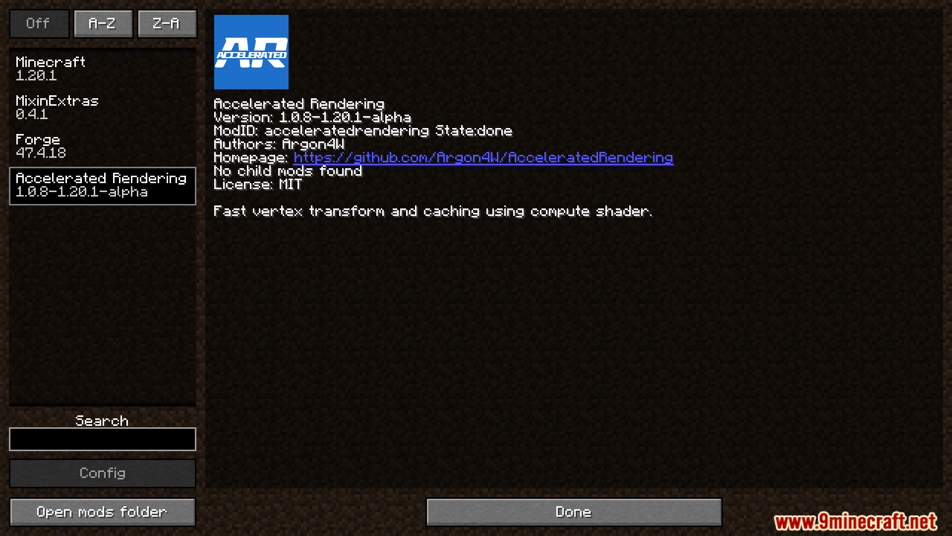 | 1.20.1 | Forge | Accelerated-Rendering-Mod-Forge-1.20.1.jar | 671 KB | Mar 31, 2026 |