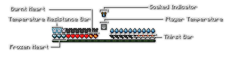 - Soaked Indicator – Display soaked body level. The soaked level will affect how quickly the player absorbs temperature.