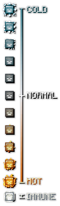 - Temperature Resistance Bar – Displays the amount of temperature resistance provided by the player’s armor.