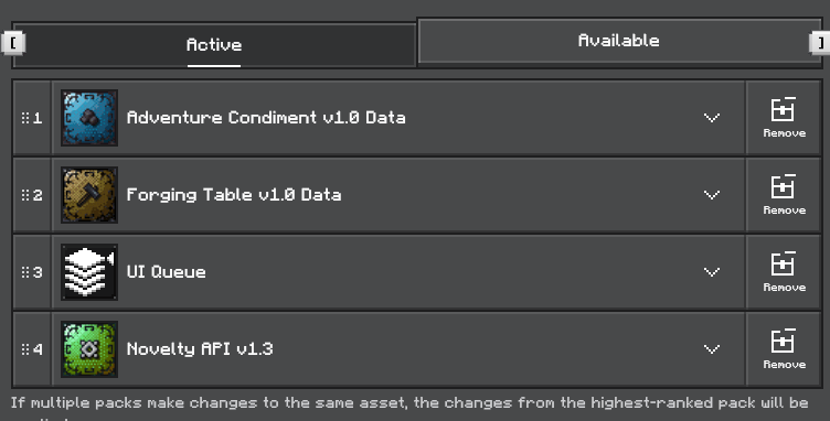 - This pack requires UI Queue to make the UI work, and Forging Table to add custom recipes. And some optional packs that won’t affect gameplay much but are compatible, like Novelty API.
