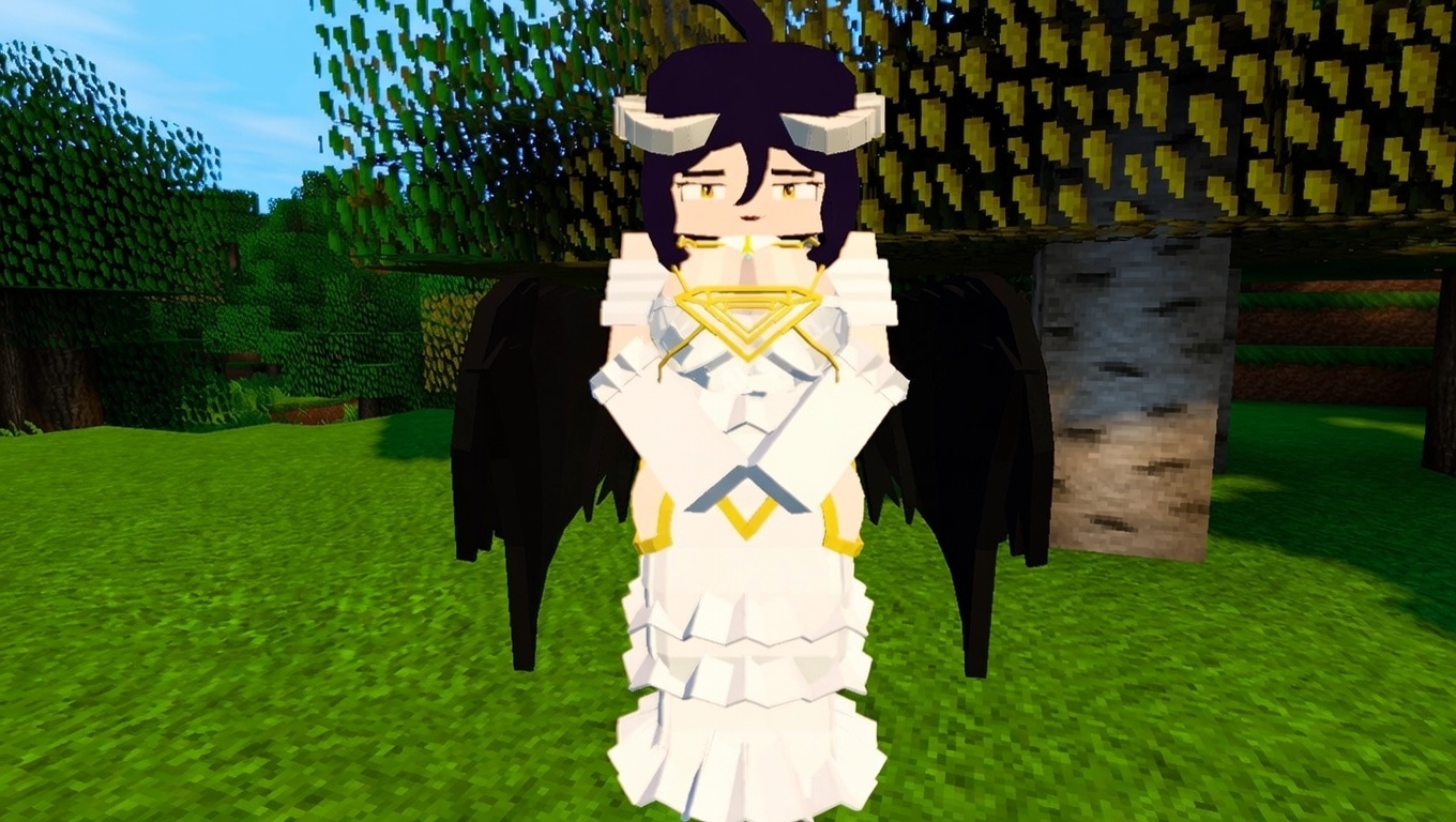 Albedo Jenny Mod Model recreates Albedo, the iconic succubus overseer from the Overlord anime/light novels, complete with her signature black hair, curved horns, golden eyes, white frilly dress, black feathered wings, and demonic features-all rendered in Minecraft’s blocky style with custom 3D geometry, high-detail textures, and smooth animations.