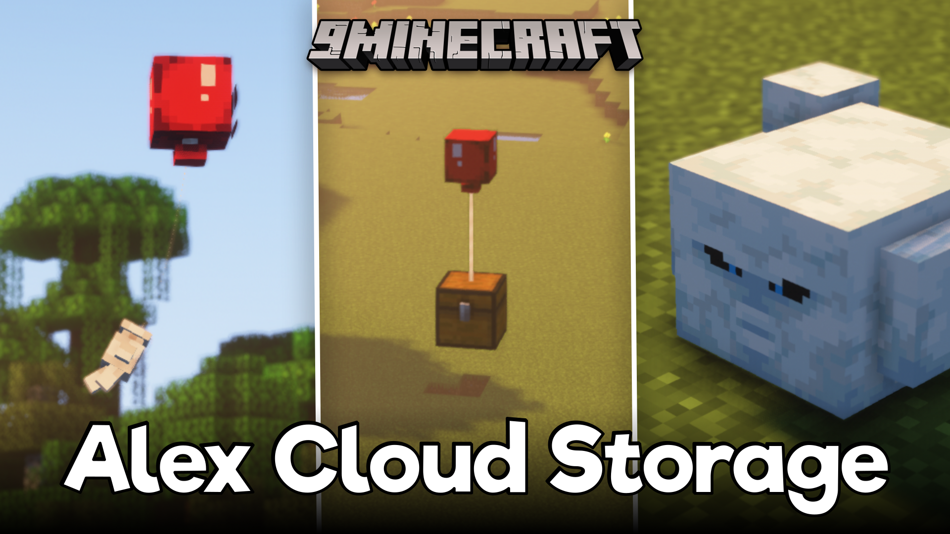 On hearing the term “cloud storage”, most people tend to think about data storage systems and software. But Alex Cloud Storage Mod (1.20.1, 1.19.4) does not have anything to do with all that. This mod basically allows you to store your items in the clouds. By killing the new mobs introduced by this mod, you can obtain the items required to craft balloons. Tie a balloon on a chest to make it float into the sky. You can use the new Cloud Chest to access a storage space that offers up to 4096 slots of storage, and works similar to an ender chest. Installing the Just Enough Items mod is recommended to view the crafting recipes in-game.