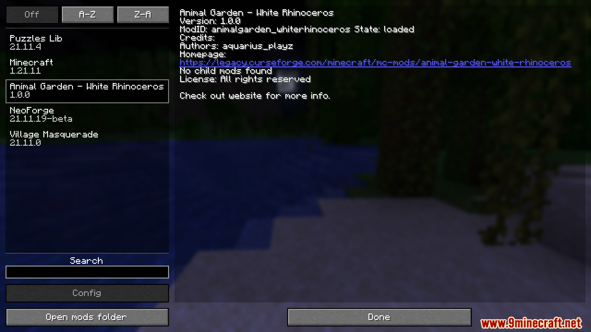 Animal Garden White Rhinoceros Mod (1.21.11, 1.20.1) Download Links