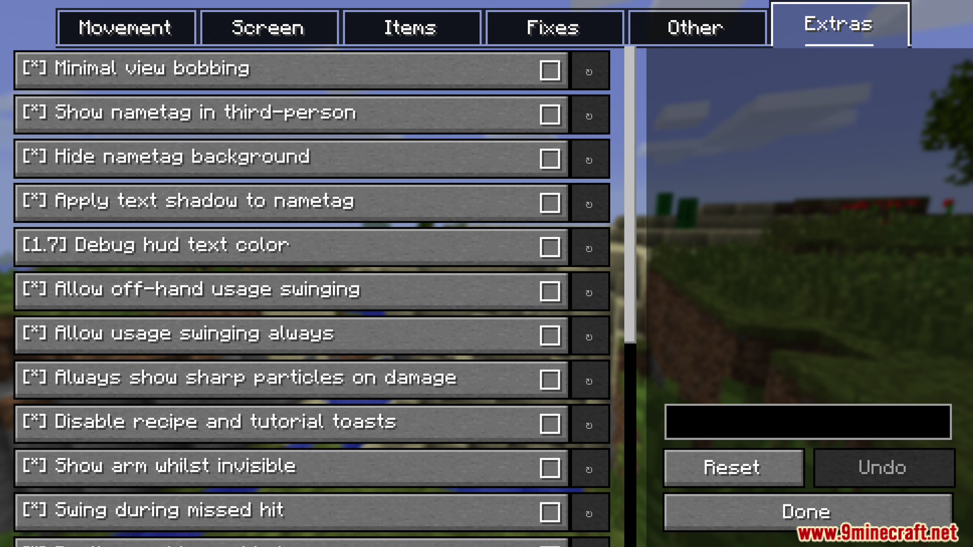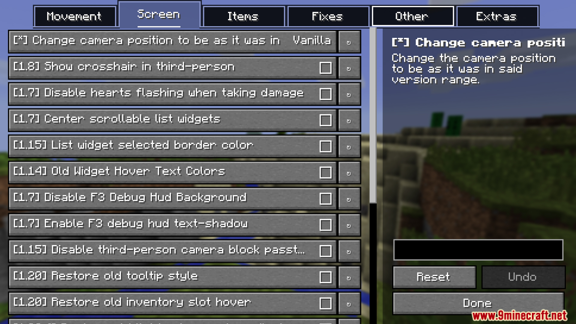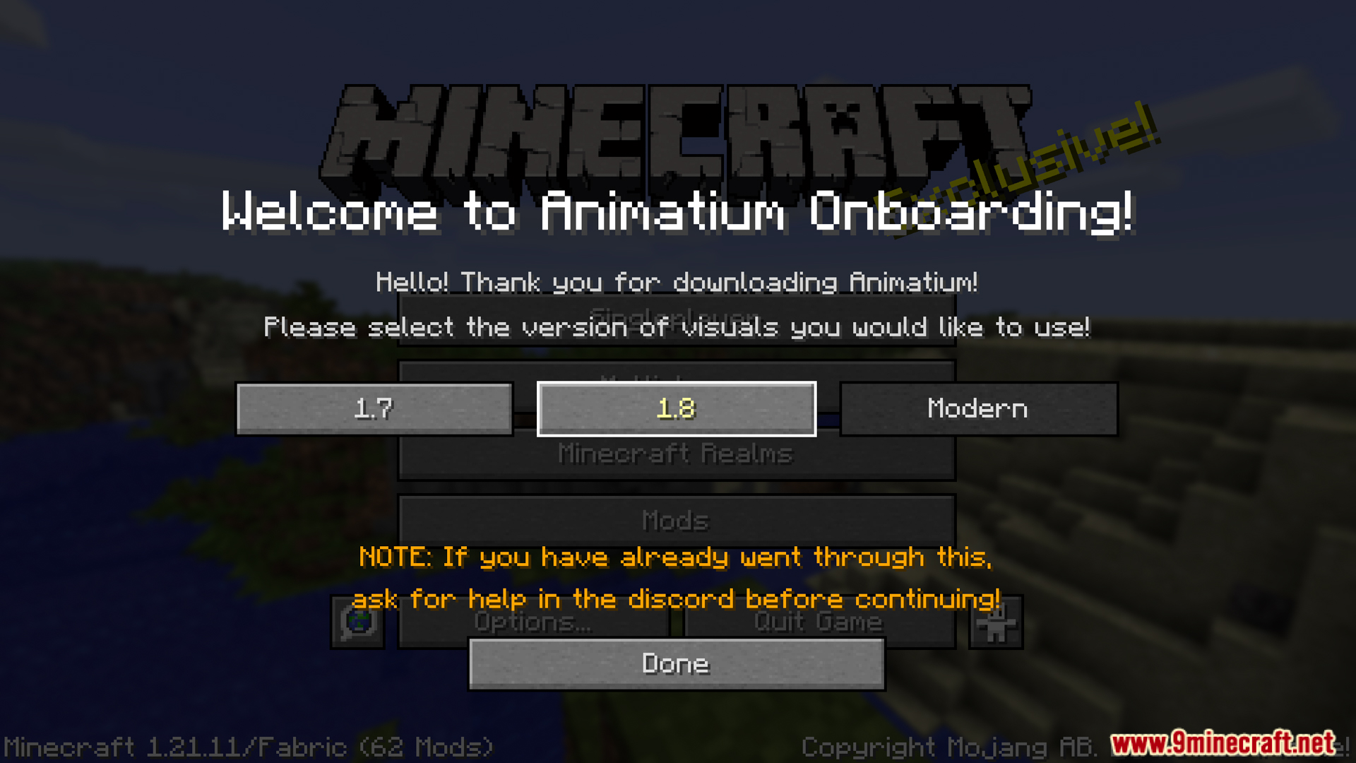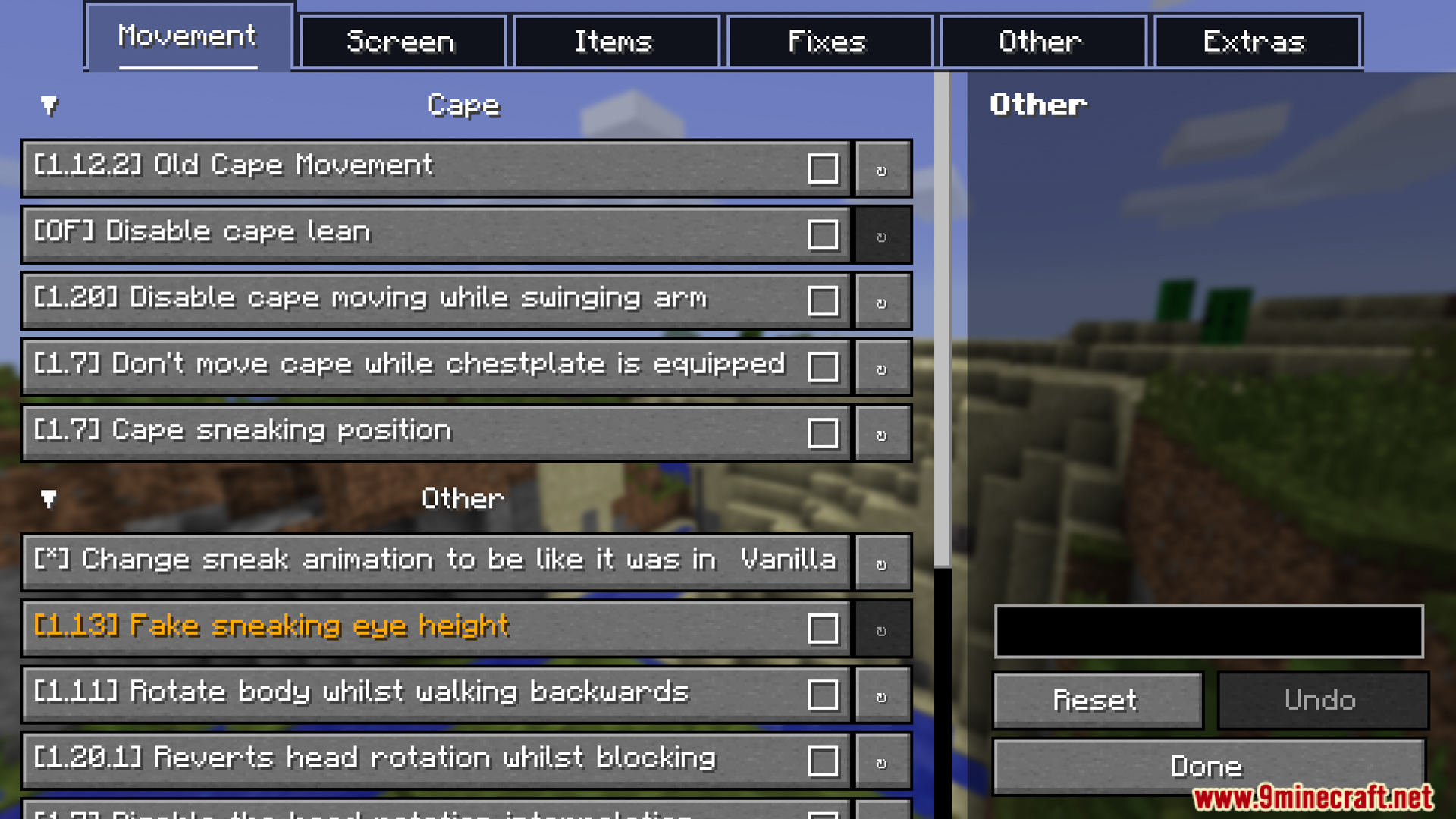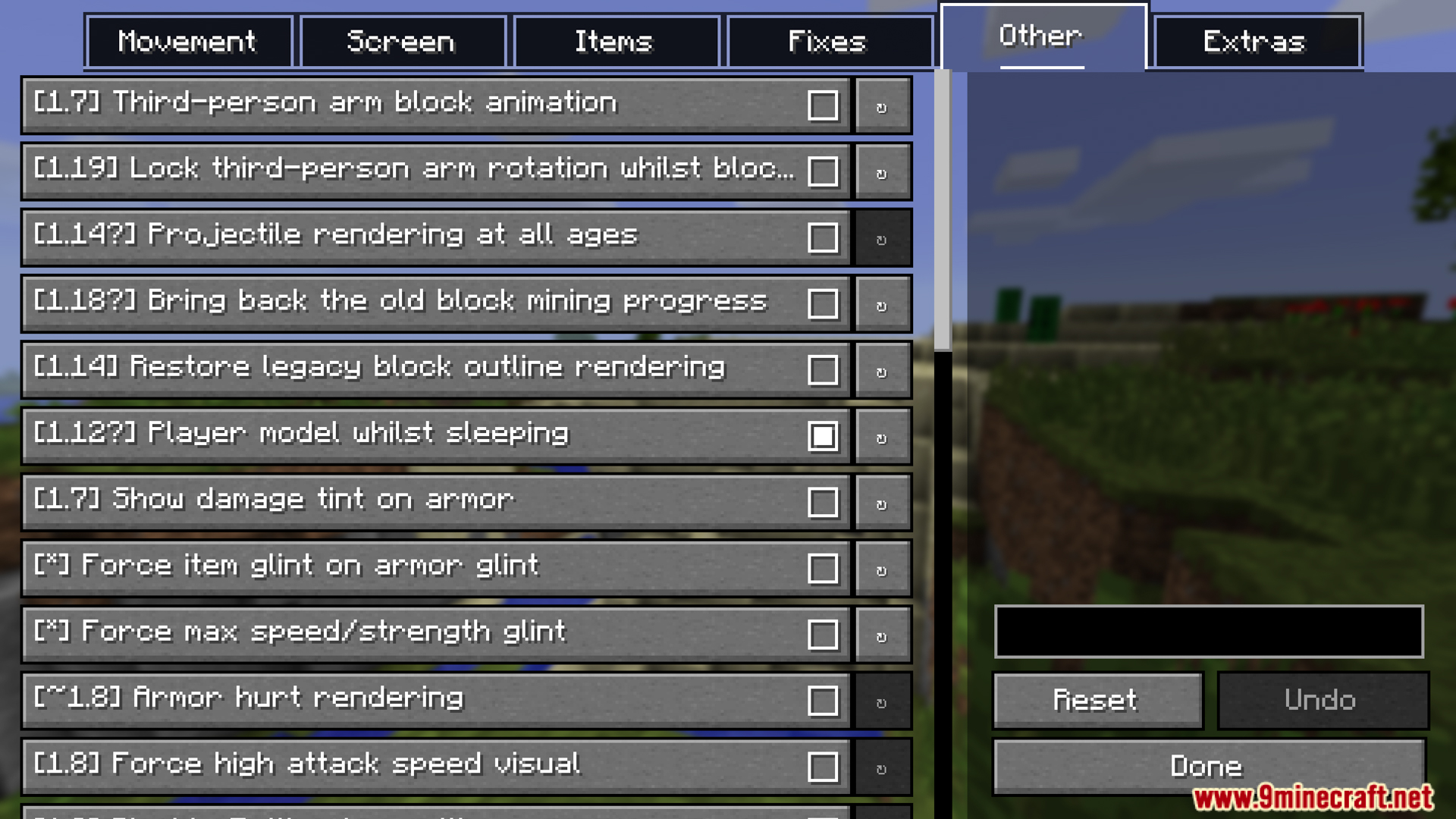 - The game will display many animation elements similar to those in Minecraft 1.7/1.8 instead of the modern style.