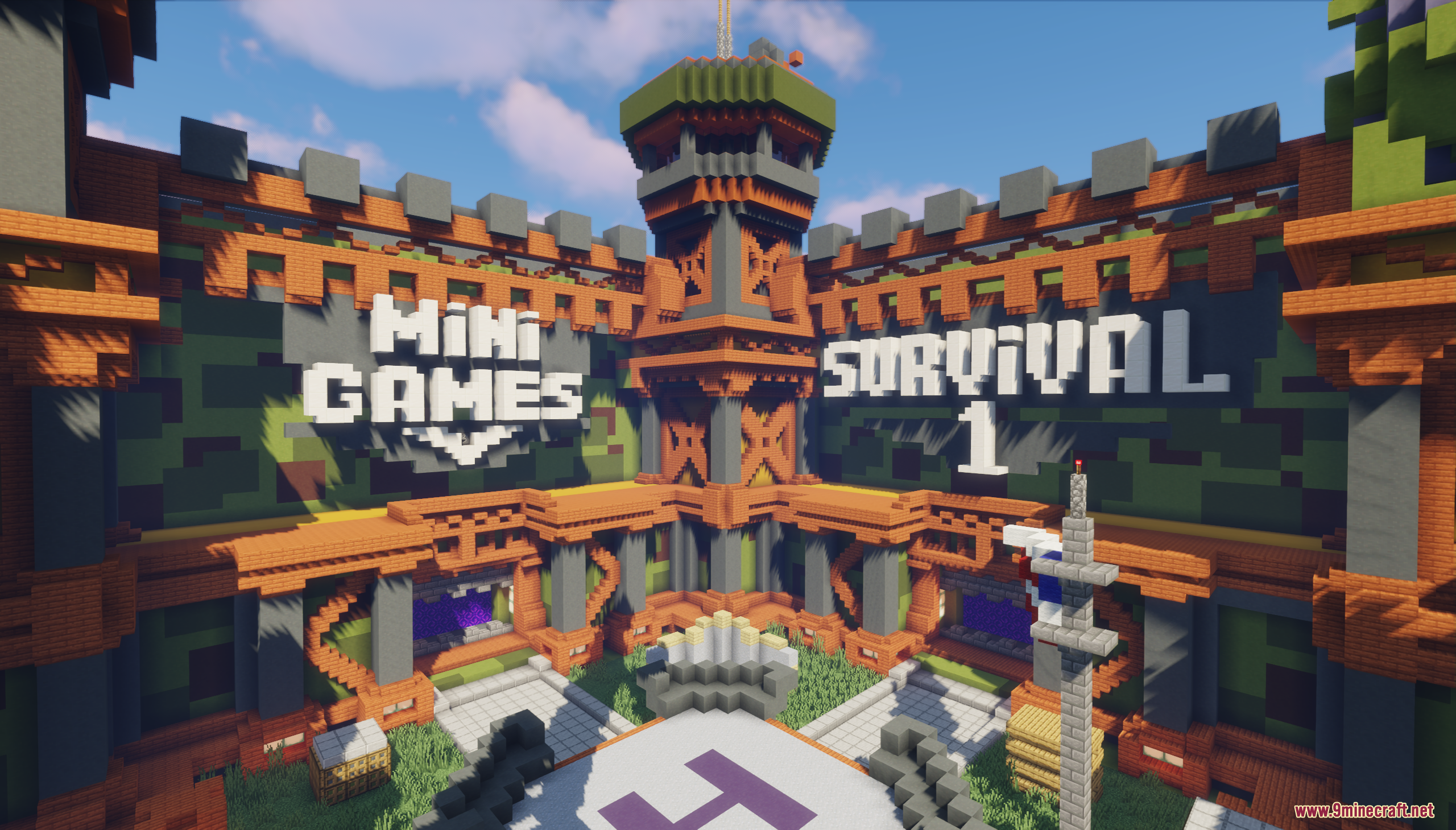 Ararmis Military Hub Map (1.21.10, 1.20.1) brings you a battle-themed Minecraft lobby designed for servers that blend adventure and competition. This fortress-style hub features three portals, each leading to different worlds or game modes, as well as secret spots and NPC areas for players to explore and interact with. The lobby also includes game signs for easy navigation between survival, minigames, or any custom modes your server offers.