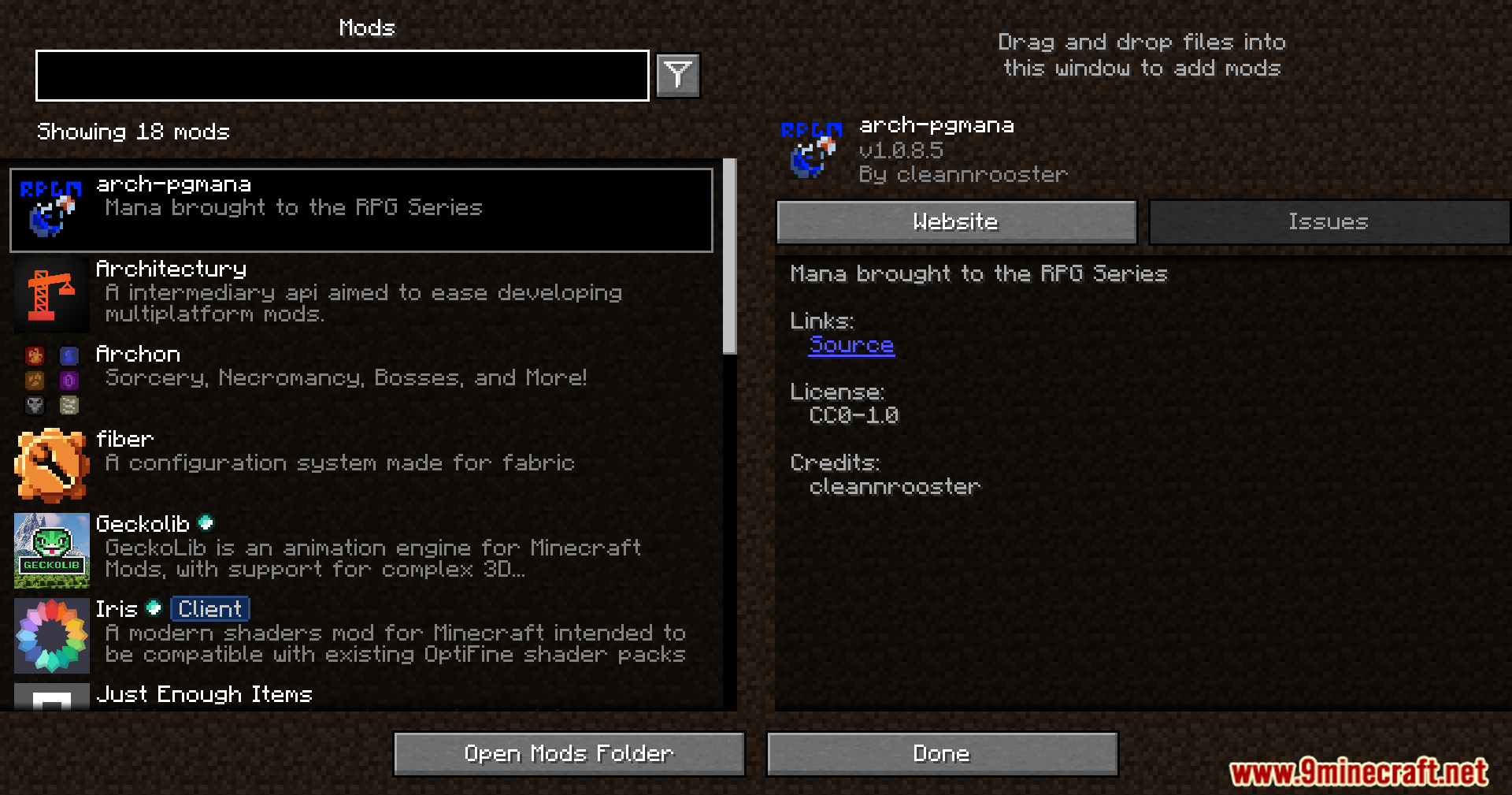 Arch-RPGMana Mod (1.20.1, 1.20) adds a mana system built around attributes such as maximum mana, mana regeneration, and mana cost, designed to work with the Spell Engine API. Mana is used to cast spells, scales through equipment, enchantments, and potions, and includes mechanics like mana debt and short-term damage scaling based on recent mana usage.