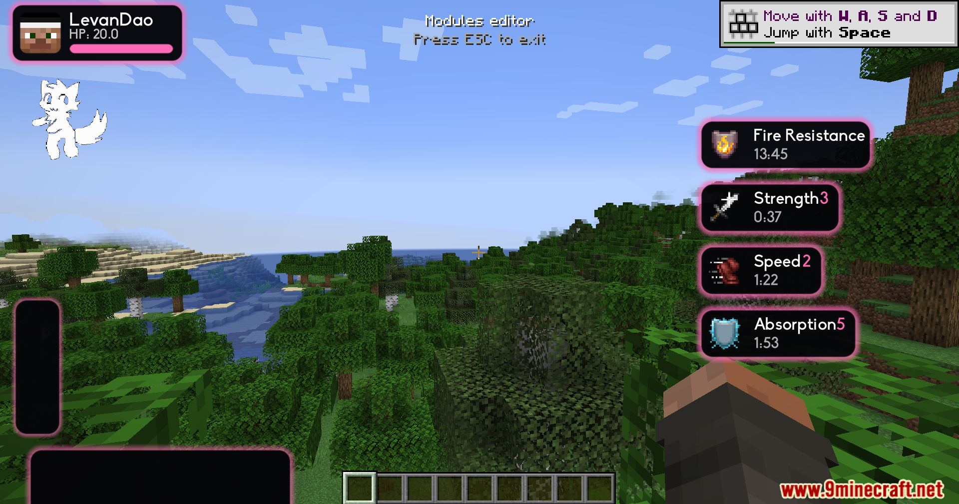 O. - Clean visual style: Modern click GUI, vibrant array list, and an overall polished look.