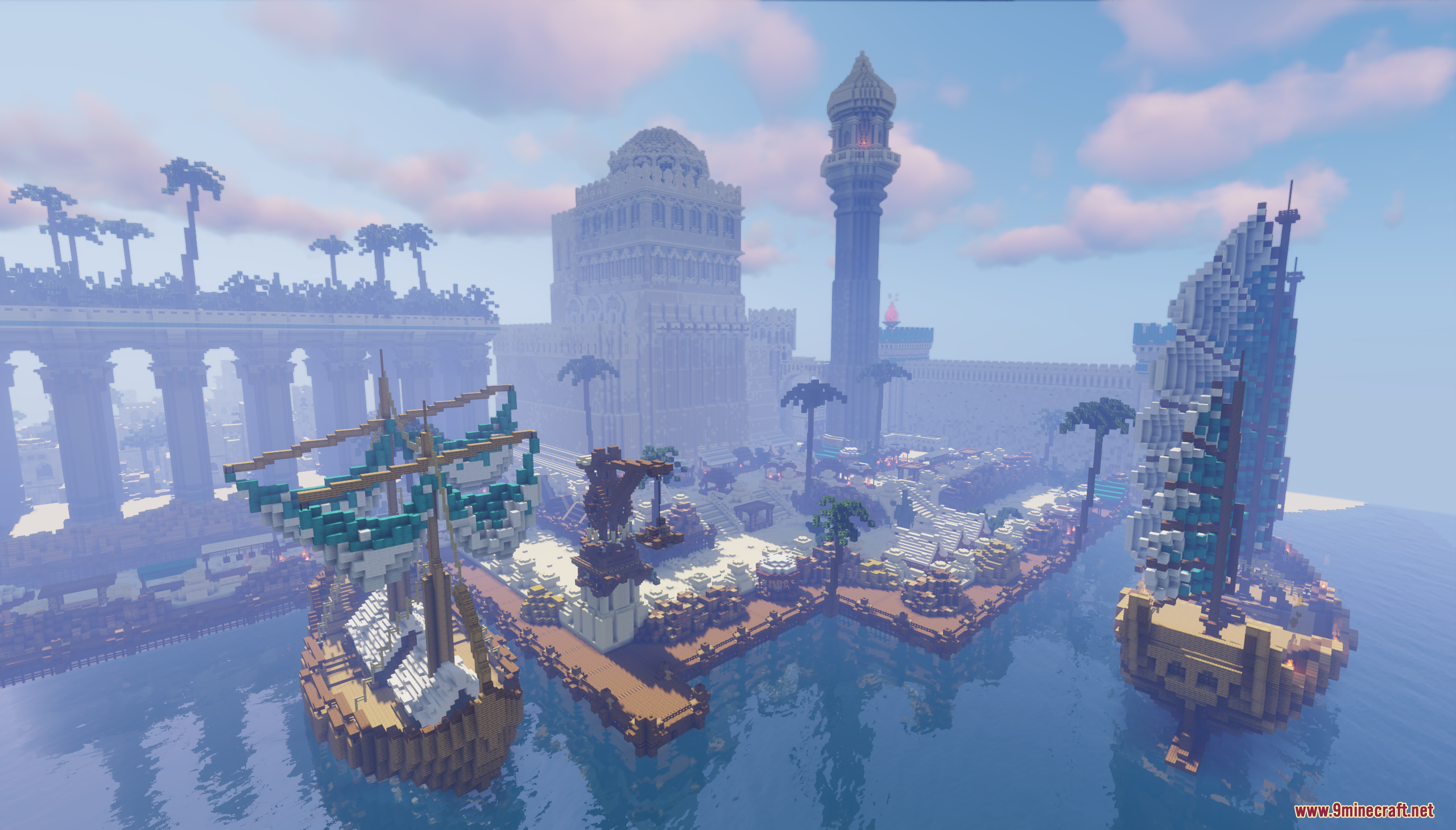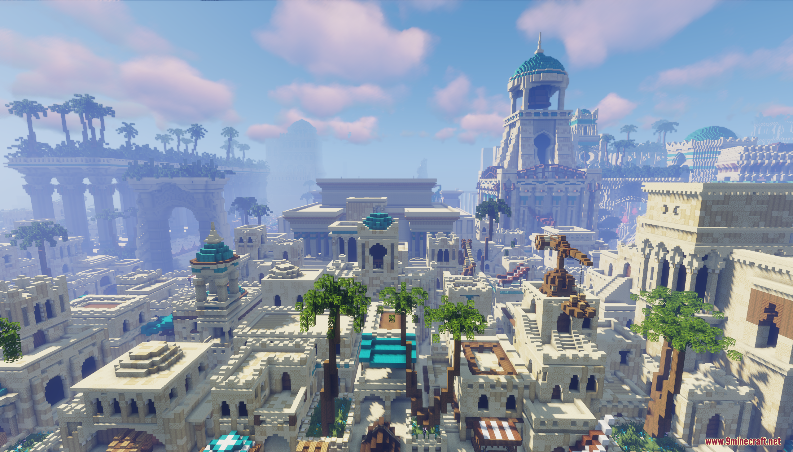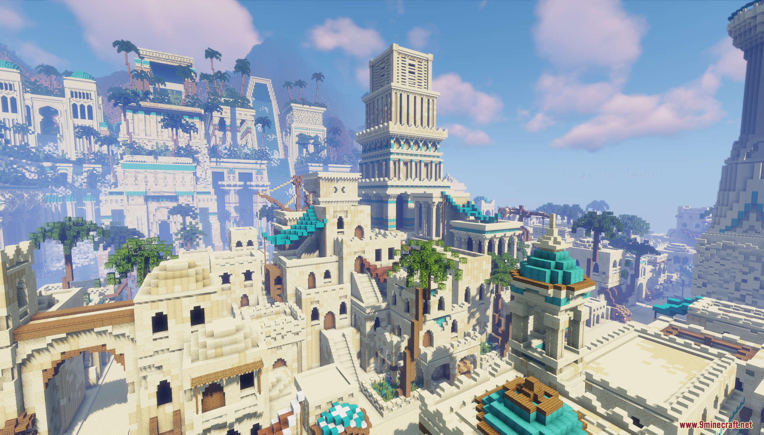 Babylon Map 2 (1.21.10, 1.20.1) takes you to a breathtaking architectural wonder rising from the desert sands. This grand Minecraft creation captures the essence of an ancient empire at its peak: towering ziggurats, cascading gardens, domed palaces, and fortified walls glowing with divine light. Every street and temple tells a story of ambition, artistry, and civilization reaching toward the heavens.