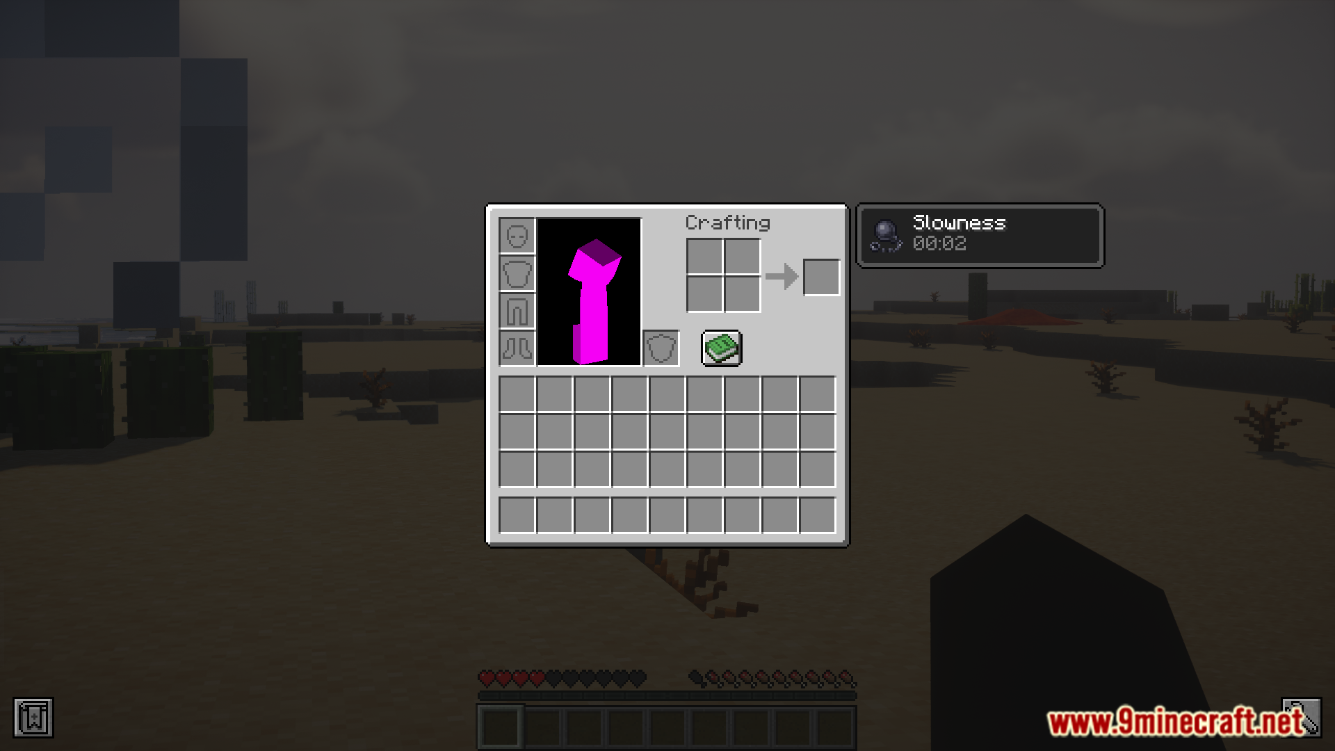 As the name suggests, Bad Effects Mod (1.20.1, 1.19.2) introduces a collection of different negative effects into the game. These are effects that will be applied to the player as punishment when they perform certain activities. These effects will adversely affect the gameplay experience and motivates the player to not indulge in activities that inflict the effect. For example, the broken leg effect will be applied when a player loses one or more hearts from fall damage. As a result, player movement speed will be reduced until the effect runs out.
