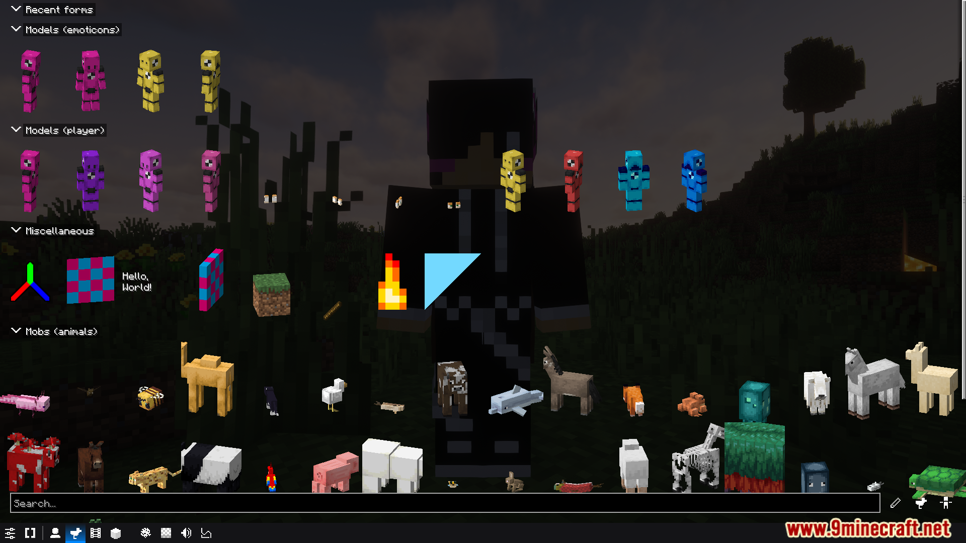 - Form system to mix animated models, blocks, items, images, and particles for actors and props.