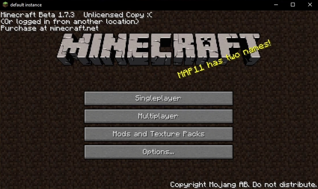 Unlicensed Copy :(label for versions b1.6-tb3 to b1.7.3 - QuitGame – shows the