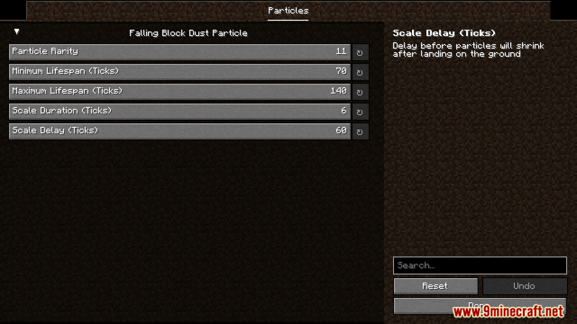 - Makes sand, gravel, and other falling blocks emit particles while floating.