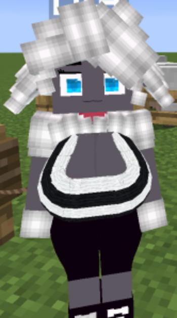 Bia Sheep Jenny Mod Model transforms Bia into a “woolly waifu,” featuring a voluminous white and gray woolly coat, blue eyes, and a black outfit with a maid-inspired apron.