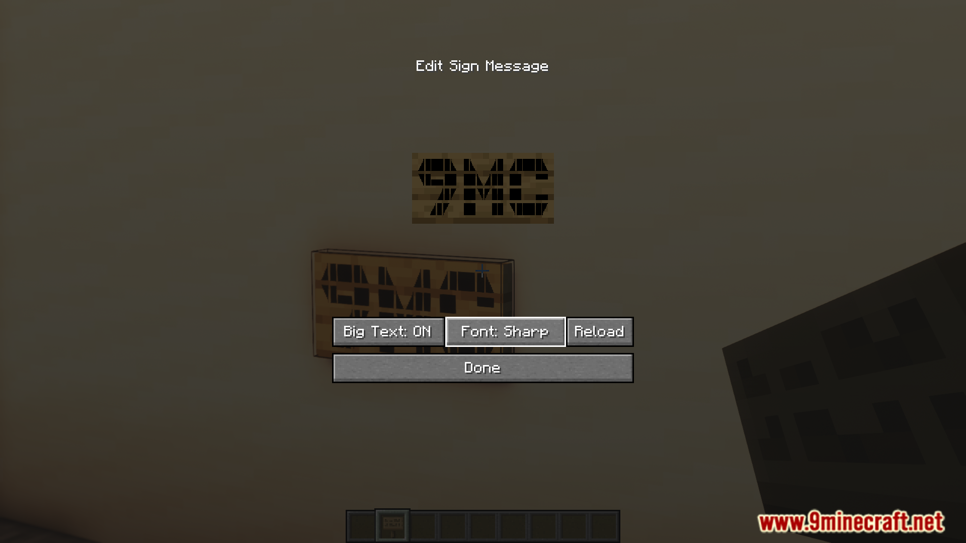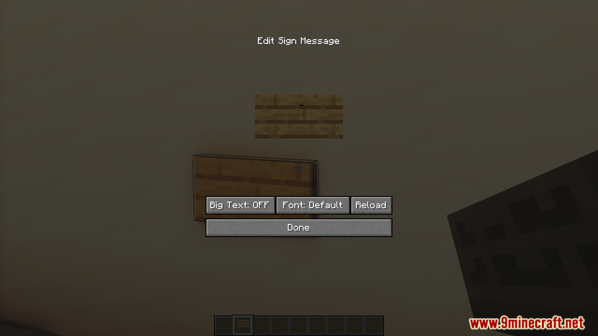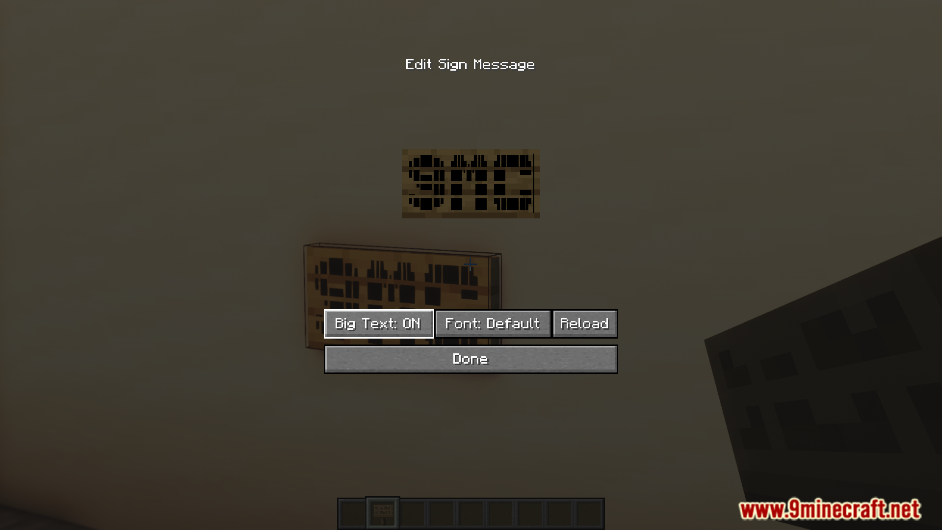 Signs are the only convenient method in the game to insert text content into your world. But the actual text that can be written into signs is very small and is only visible if the reader is close to the sign. You can make the text pop out by coloring the text or by adding a border to it. But this simply is not enough. Big Sign Writer Mod (1.21.11, 1.20.1) is here to change that. As the name suggests, this mod allows you to write bigger text content into signs. New buttons and options are added to the sign GUI for this purpose. The new GUI elements are very intuitive and easy to understand.