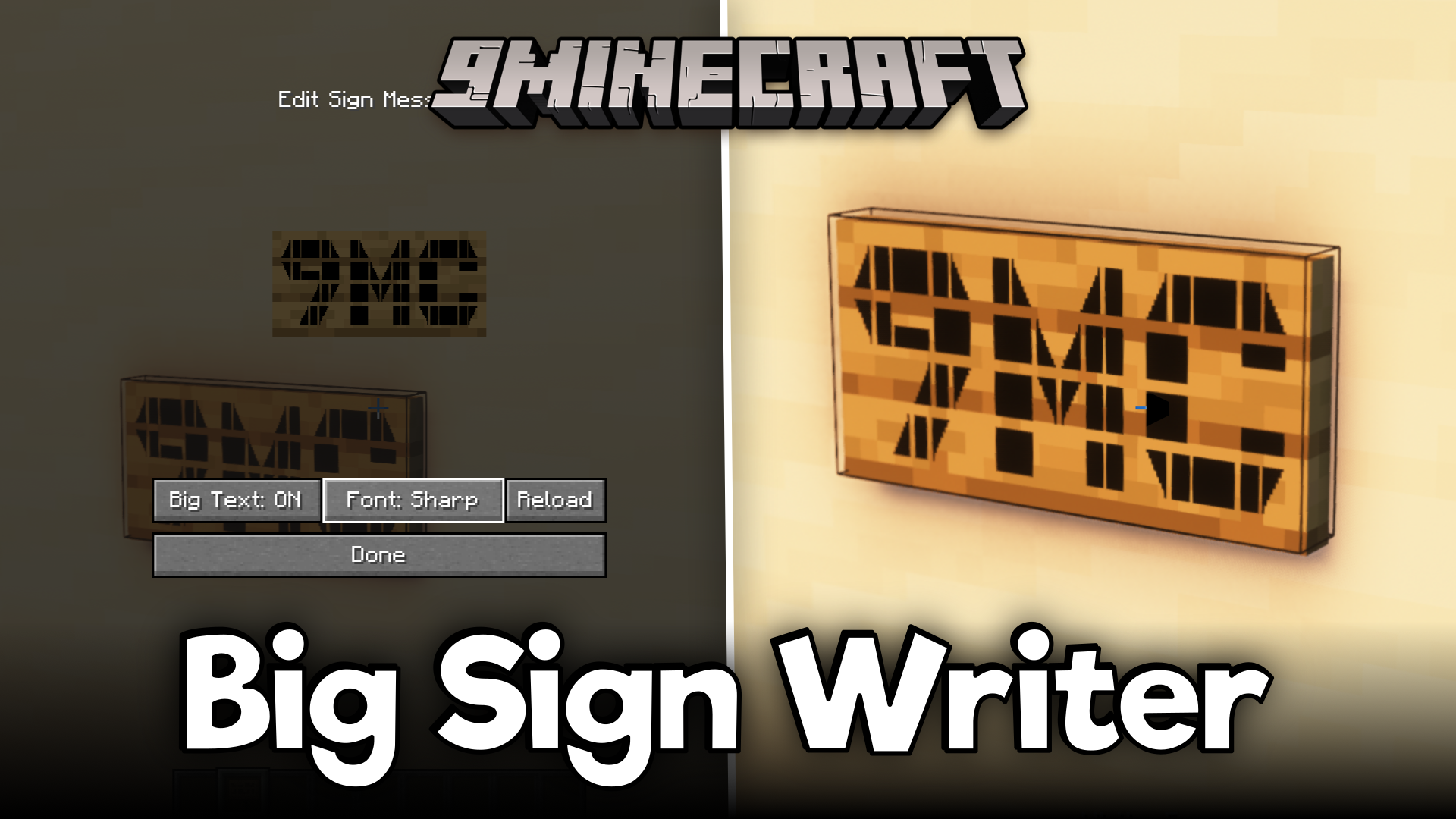 Signs are the only convenient method in the game to insert text content into your world. But the actual text that can be written into signs is very small and is only visible if the reader is close to the sign. You can make the text pop out by coloring the text or by adding a border to it. But this simply is not enough. Big Sign Writer Mod (1.21.11, 1.20.1) is here to change that. As the name suggests, this mod allows you to write bigger text content into signs. New buttons and options are added to the sign GUI for this purpose. The new GUI elements are very intuitive and easy to understand.