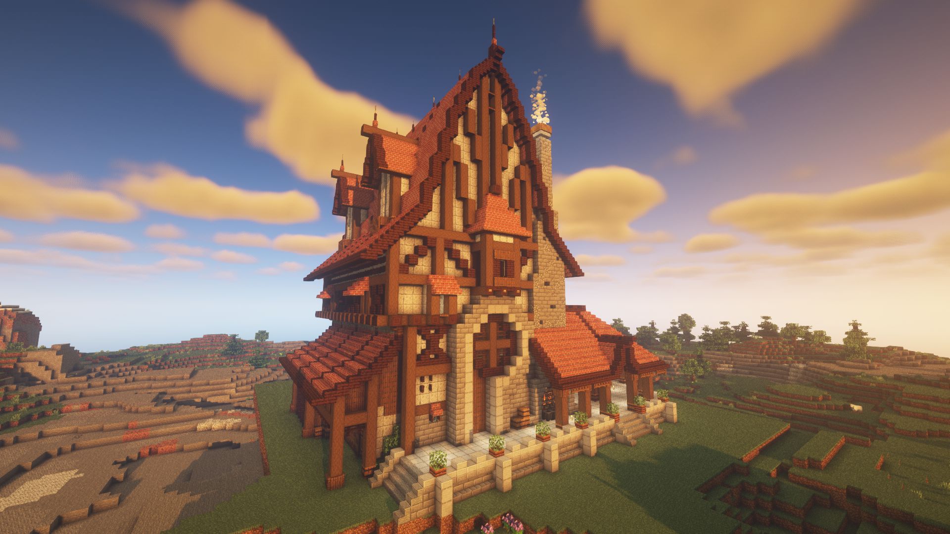 The Blacksmith Starter Base is a spacious, multi-functional structure crafted exclusively with vanilla materials, perfect for any 1.16+ modpack. This expansive blacksmith features four floors with multiple rooms, a chimney designed to accommodate a Tinker’s Smeltery, and a large patio area for added utility. It incorporates interconnected staircases for seamless access to all floors, adding a playful navigation element. The base is well-lit to minimize dark spots, though players are advised to use the F7 key to check for any overlooked areas. A prominent circular window at the rear serves as an ideal spot for integrating a Create mod windmill.