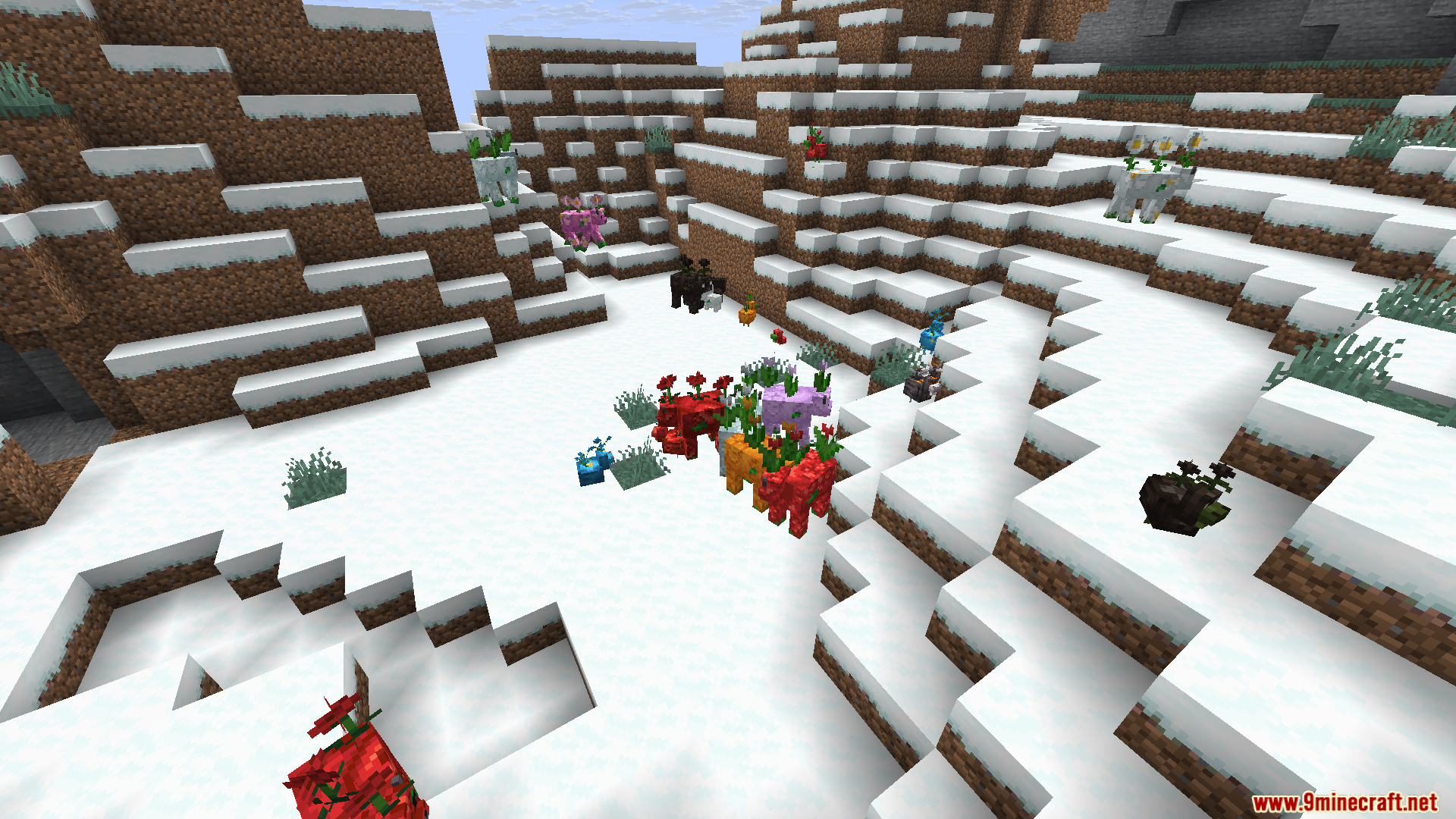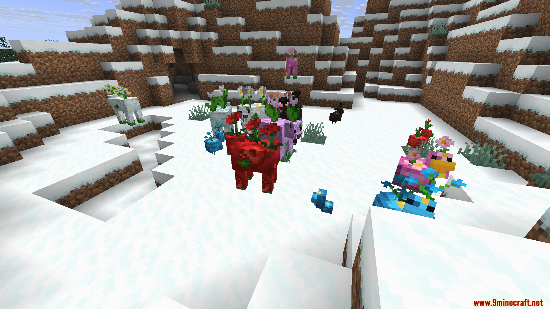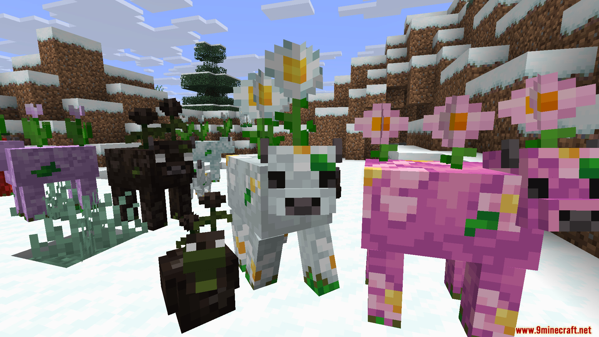 - These mobs spawn naturally in flower forests, each carrying blooms that match their biome.