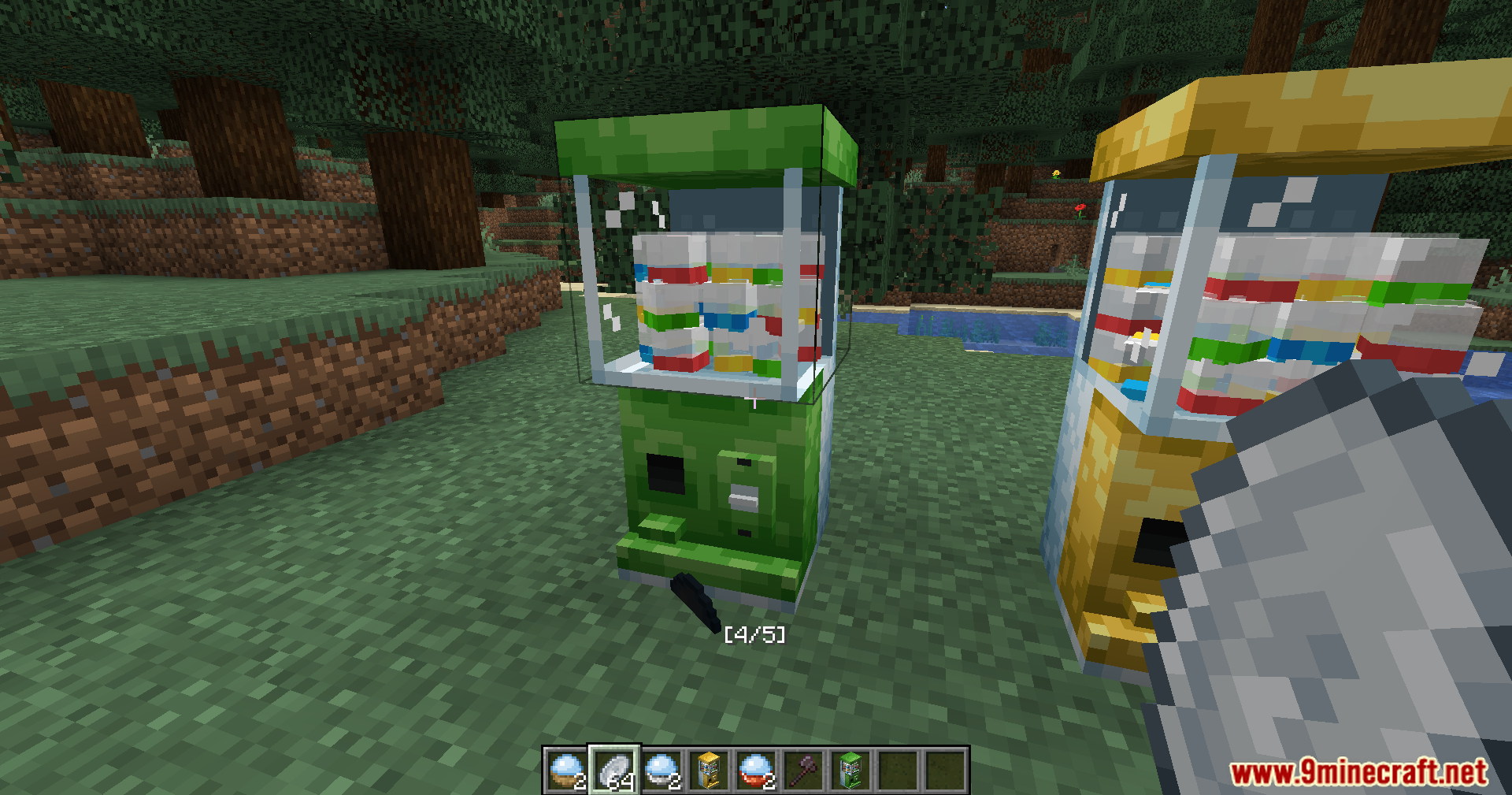 - Craftable Gacha Machine: Built with iron ingots, glass, and a dispenser