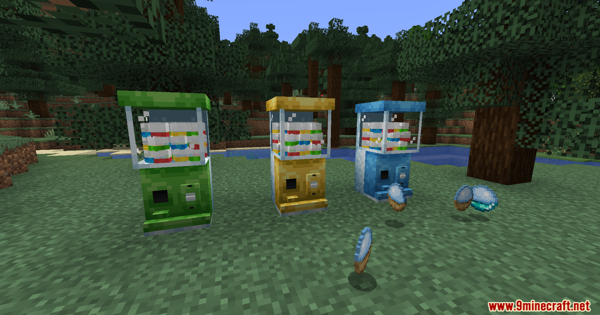 Bloo’s Gacha Machine Mod (1.21.1, 1.21) brings the gacha mechanics into Minecraft. Spend emeralds to craft Gacha Coins, insert them into a custom machine, and receive a random loot capsule.