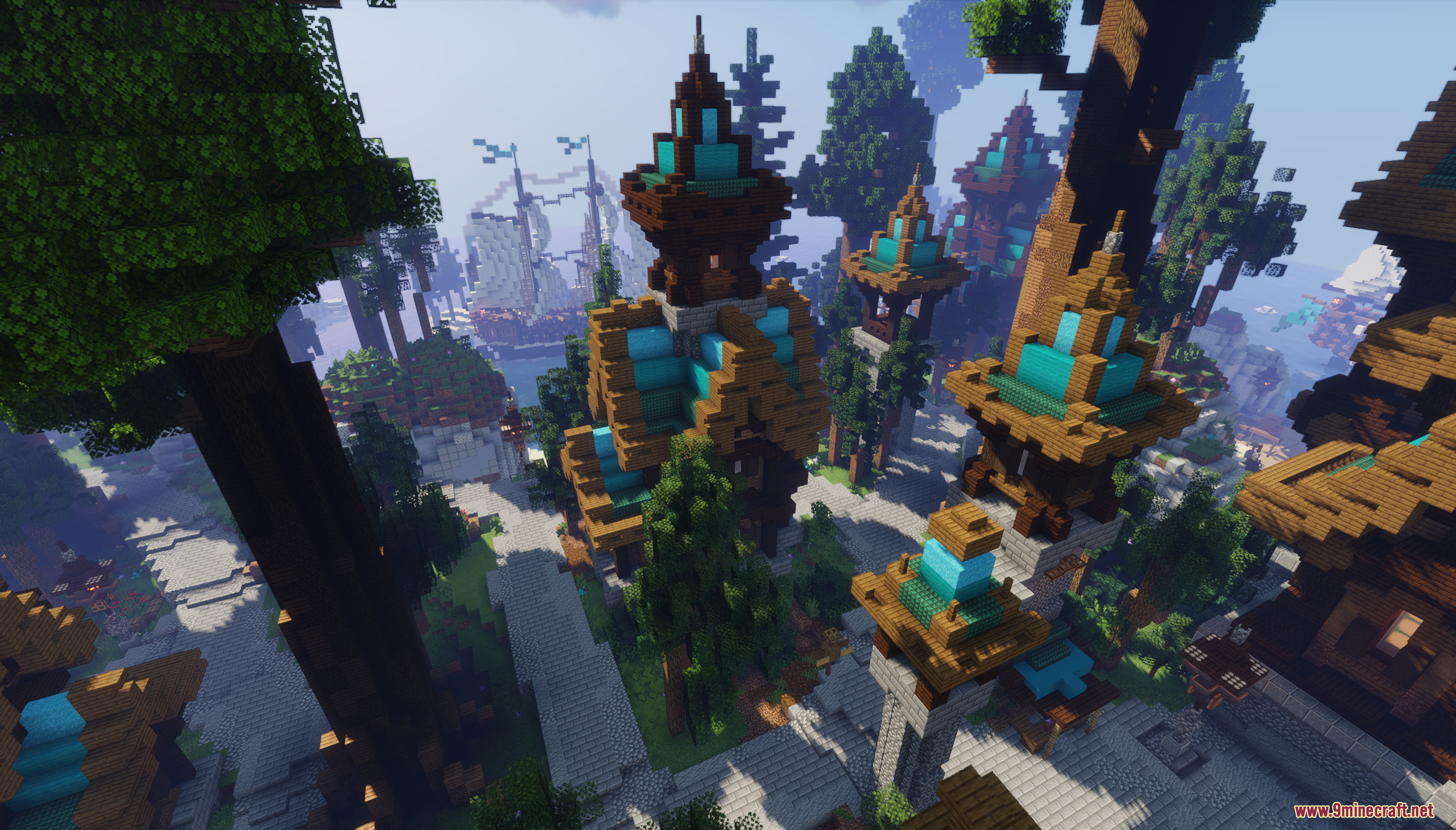 Blue Forest Map (1.21.10, 1.20.1) takes you deep into a lush forest surrounded by calm blue waters, where adventure meets tranquility. This beautifully detailed 500×500 lobby is filled with life — from towering spruce trees and cozy village homes to lively markets and a port with majestic ships ready to sail. Explore the islands, wander through shaded paths, and discover interiors that bring the build to life. With spots for NPCs, fountains, and hidden corners to explore, this serene forested haven is the perfect setting for any Minecraft hub or survival spawn.