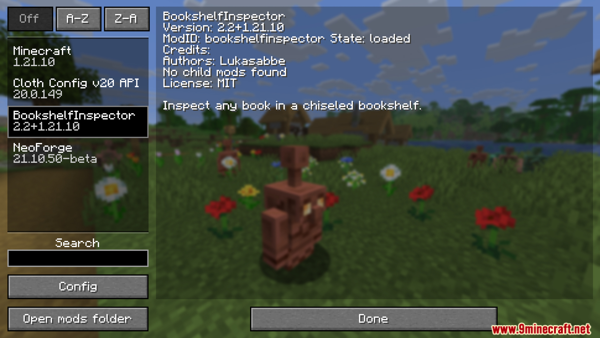 Bookshelf Inspector Mod (1.21.10, 1.21.1) Download Links