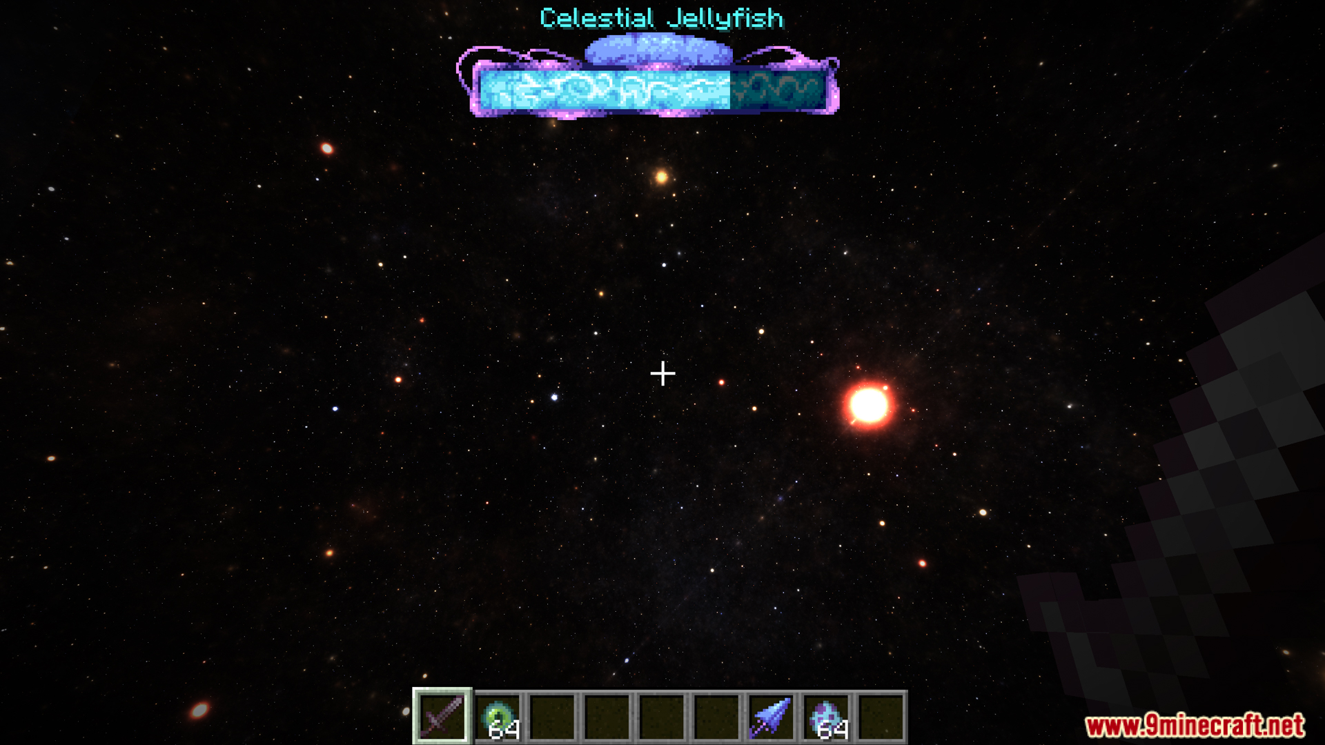 Bosses Unleashed Mod adds a new boss, the Jellyfish, to the game. The Jellyfish can be found in a special dimension accessible through wormholes found in the end highlands. Players can defeat the Jellyfish to obtain its drops, including Celestial Jelly, Celestial Core, Celestial Jellyfish Armor, and Celestial Jellyfish Umbrella.