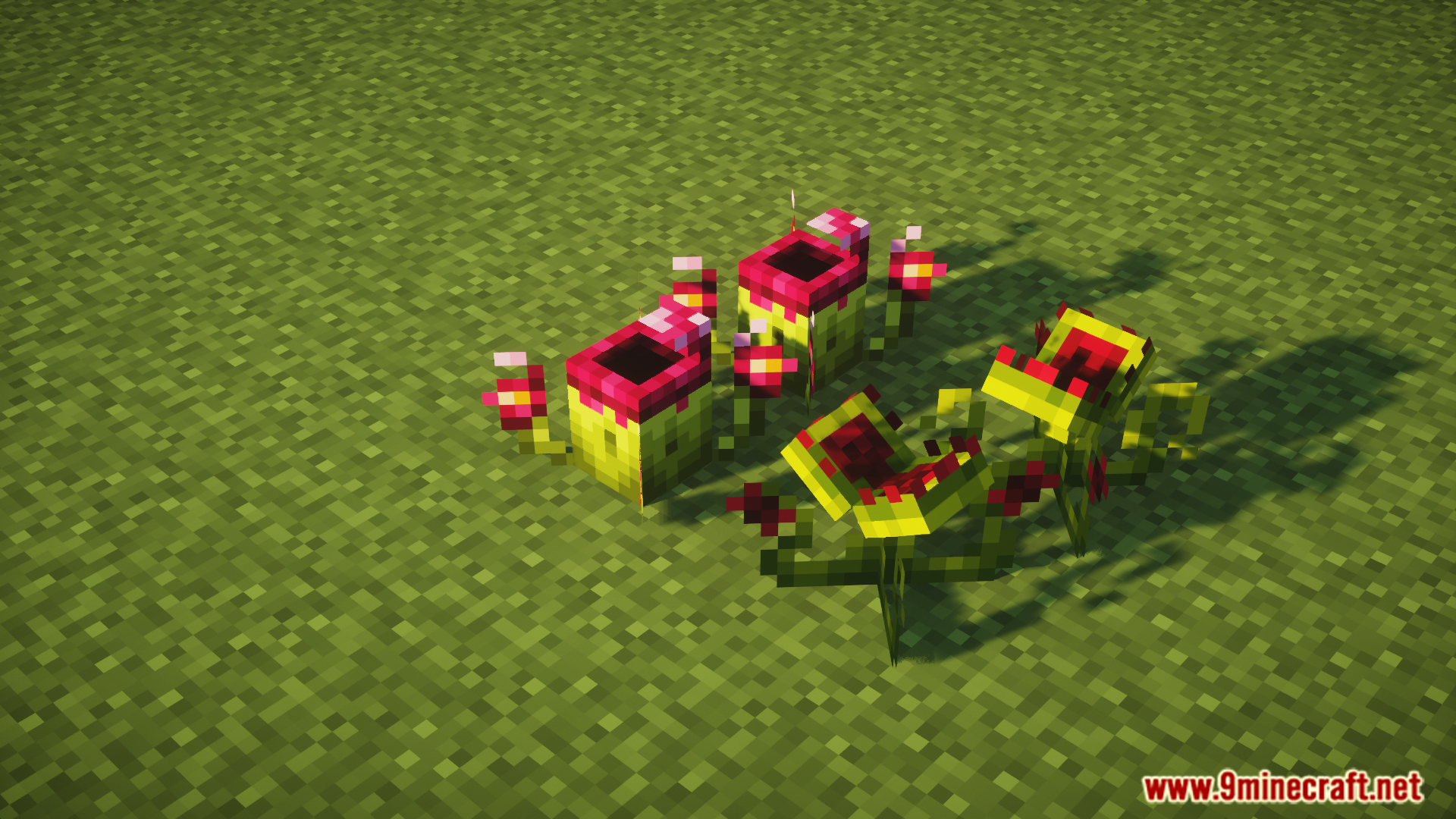 Broglis Plants Mod (1.20.1, 1.19.2) introduces some weird and unique plants into the game. While most plant mods introduce some common real-life plants into the game, this mod introduces some of the rarest, least thought-of ones. Some of these plants will also inflict negative effects onto players. Plants like Flytraps, Sundews and Pitfall grow in swamp biomes. Flytraps can snap and hurt players and monsters, sundews will slow down entities, and pitfalls will eat any meat thrown at it. The mod also includes other plants like mandrake roots, stinky flowers, sandbox trees, totem poles and giant lily pads. All of these plants have their own unique features.