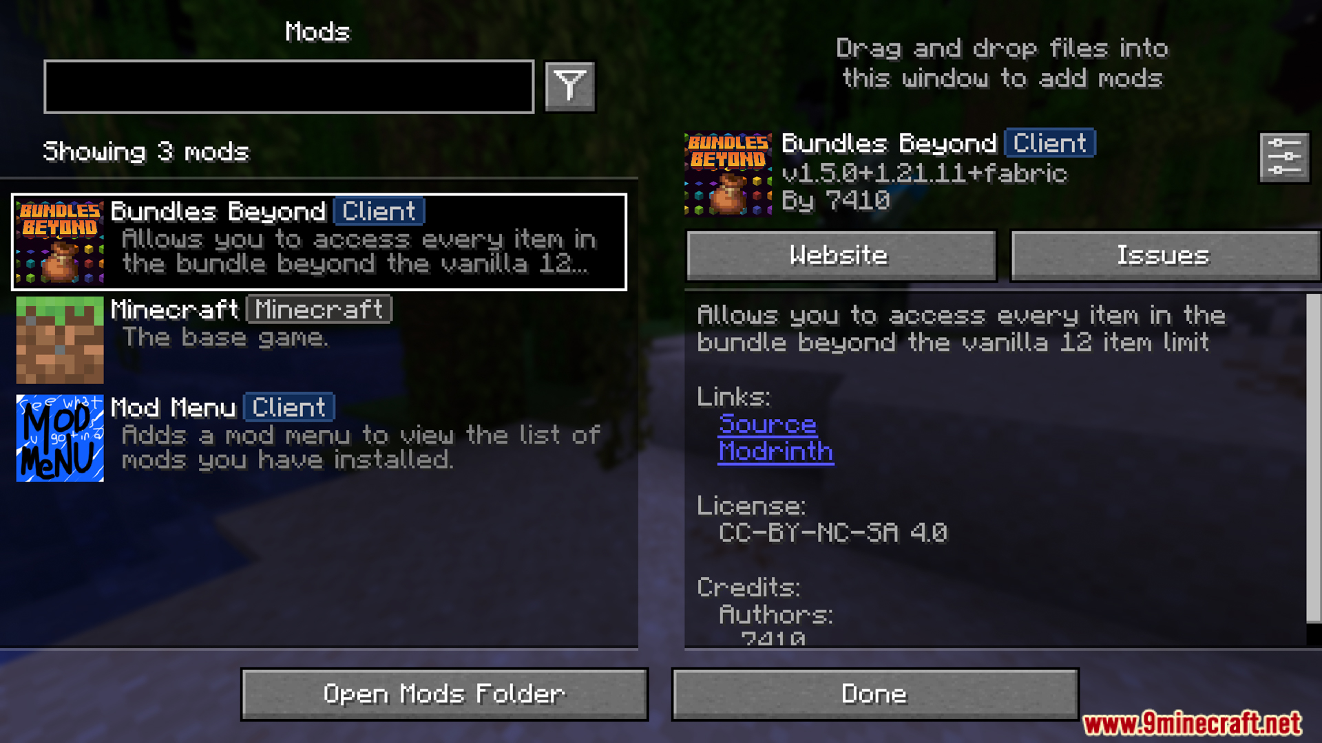 Bundles Beyond Mod (1.21.11, 1.21.3) allows you to access and manage all items within a bundle beyond the 12-item limit set by vanilla Minecraft. The mod works independently and doesn’t change gameplay other than expanding the bundle.