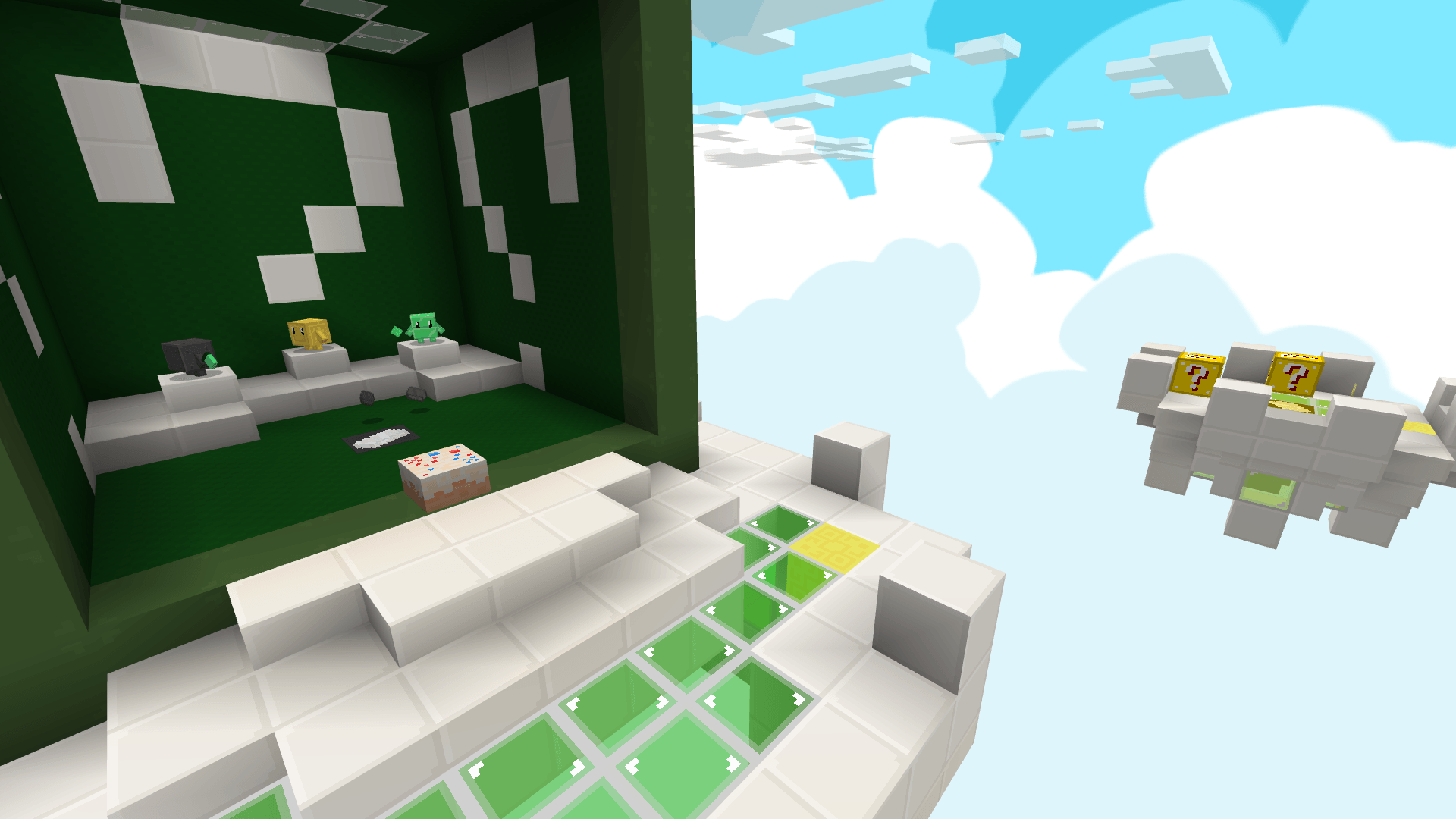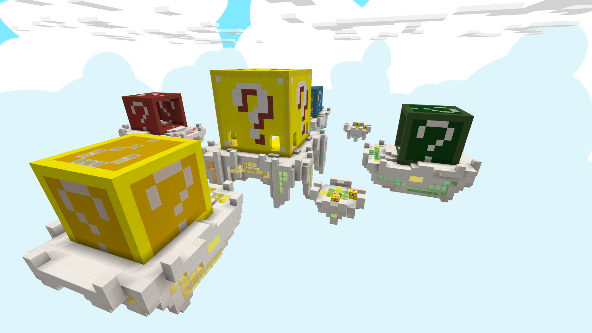 Cake Wars Map (1.20) is a competitive game set on high-altitude islands. Players need to keep their team’s cake safe to respawn and find ways to defeat their opponents. The content includes three maps: Sugar Rush, Lucky Block, and Skyblock, each with its own unique features. The Sugar Rush map has locations that increase speed and jumping ability. The Lucky Block map contains blocks that create random items or traps.