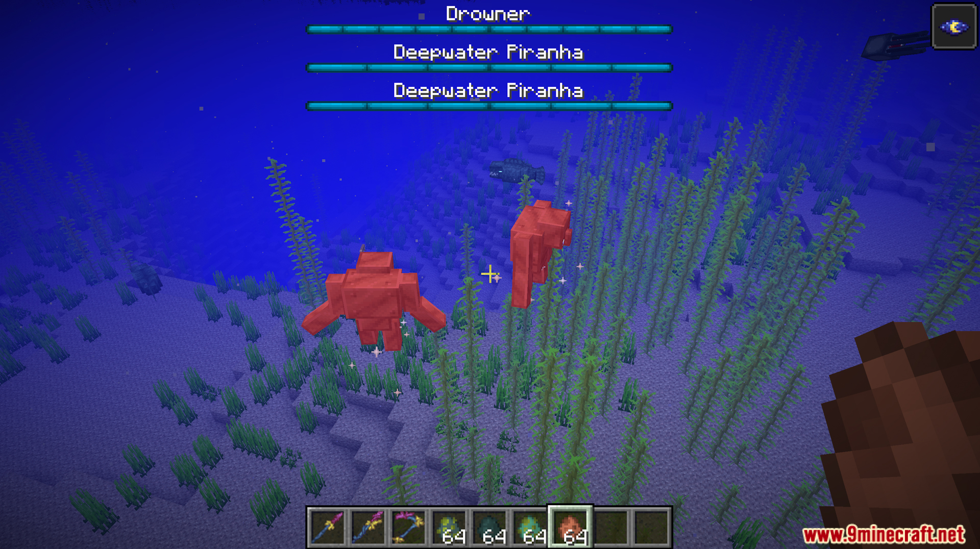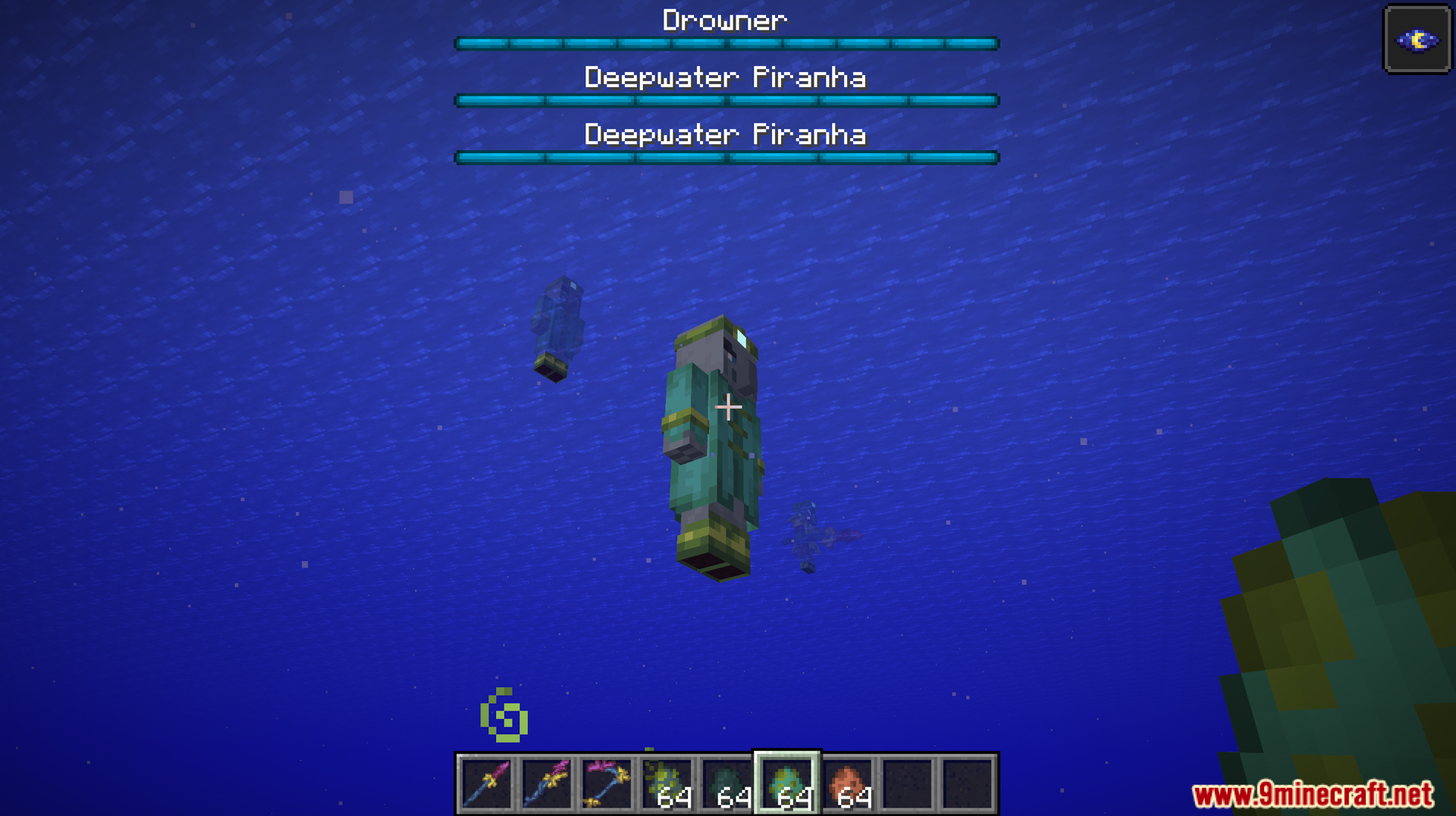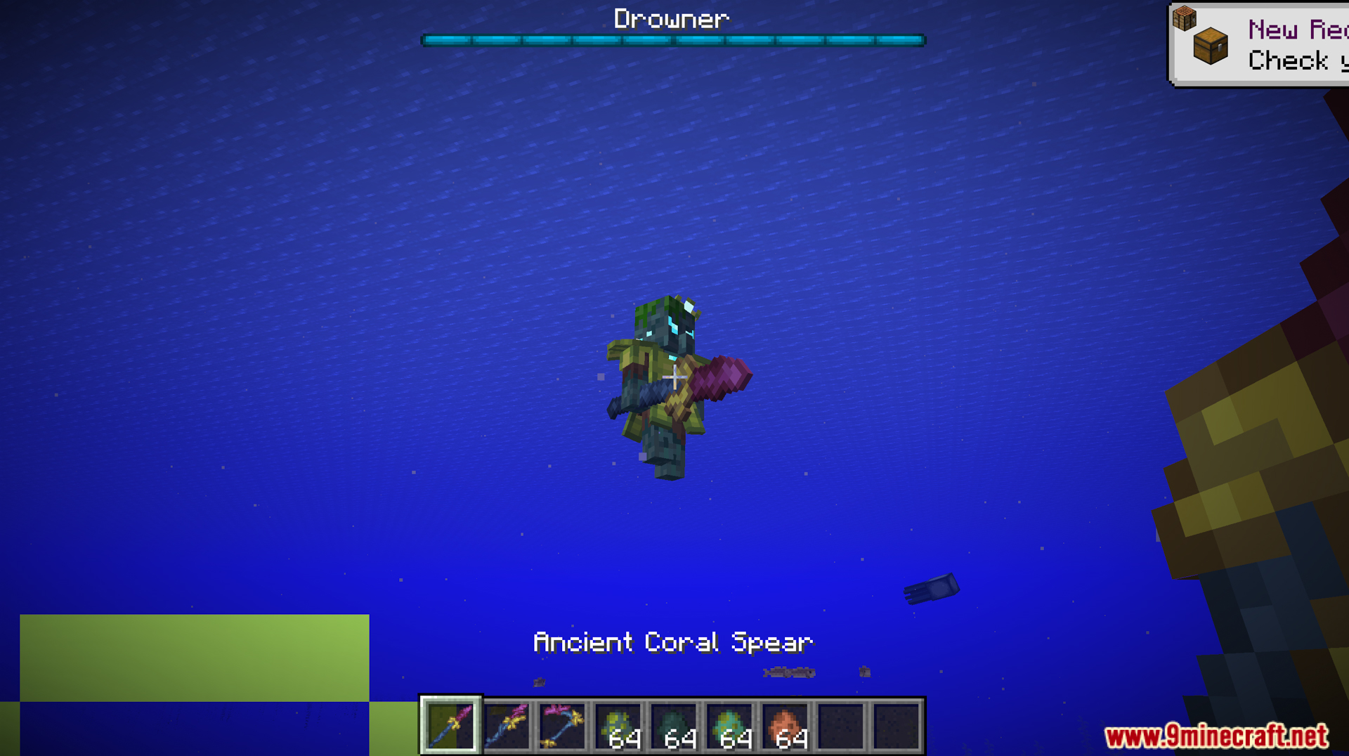 - Added boss Drowner, an illager version of Drowned, stronger with unique attack mechanics.