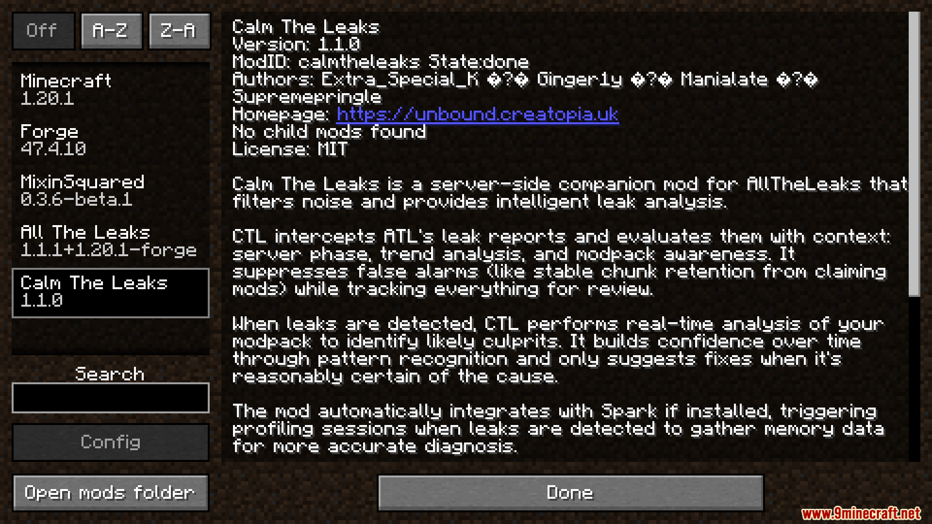 Calm The Leaks Mod (1.20.1, 1.20) is a companion to All The Leaks (ATL) that filters false positives, analyzes leak trends, and provides confident recommendations for fixing real memory leaks in modded Minecraft.