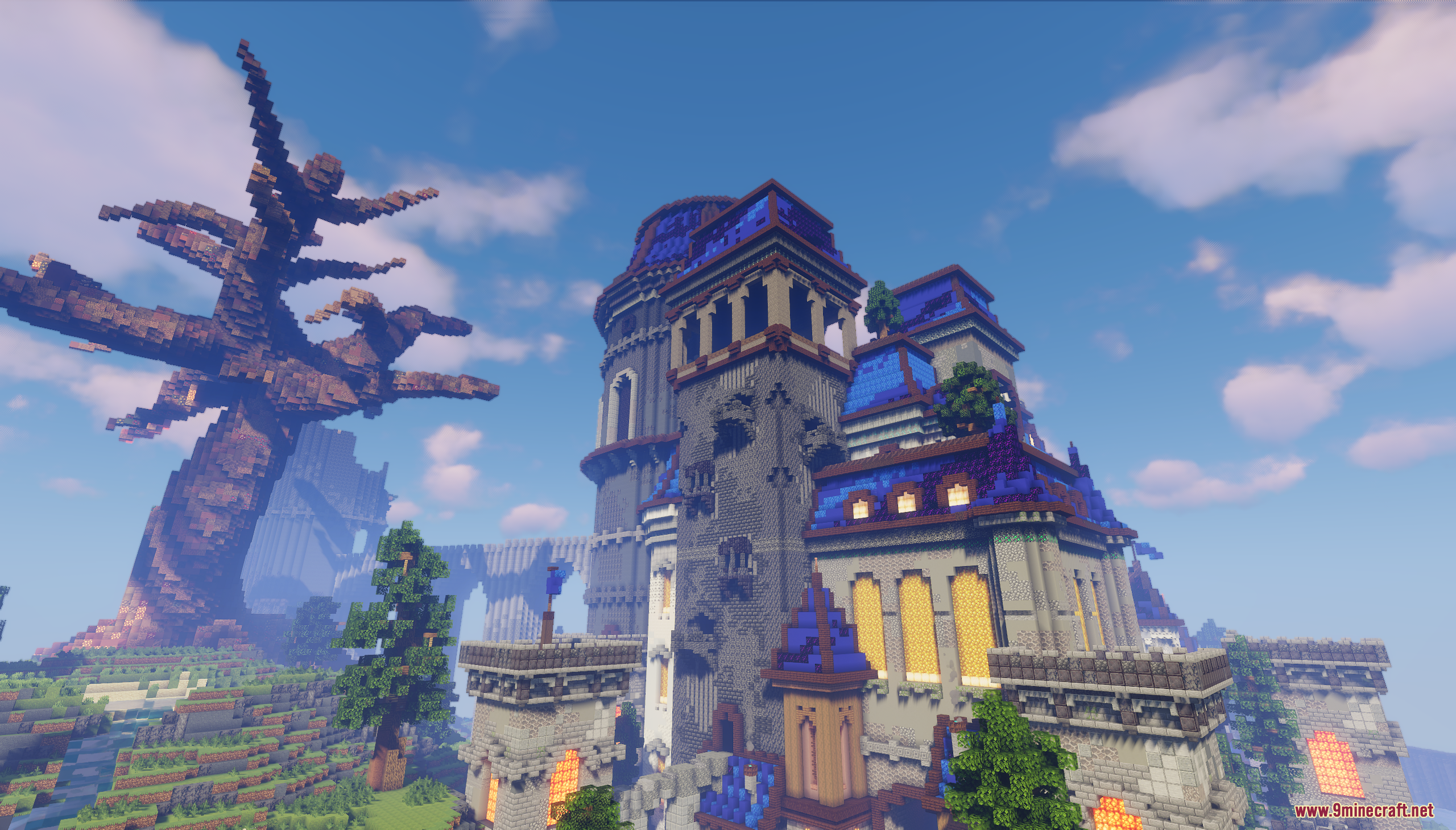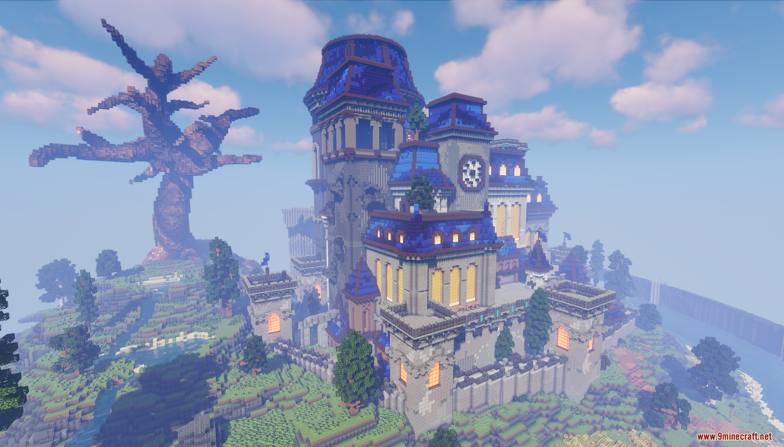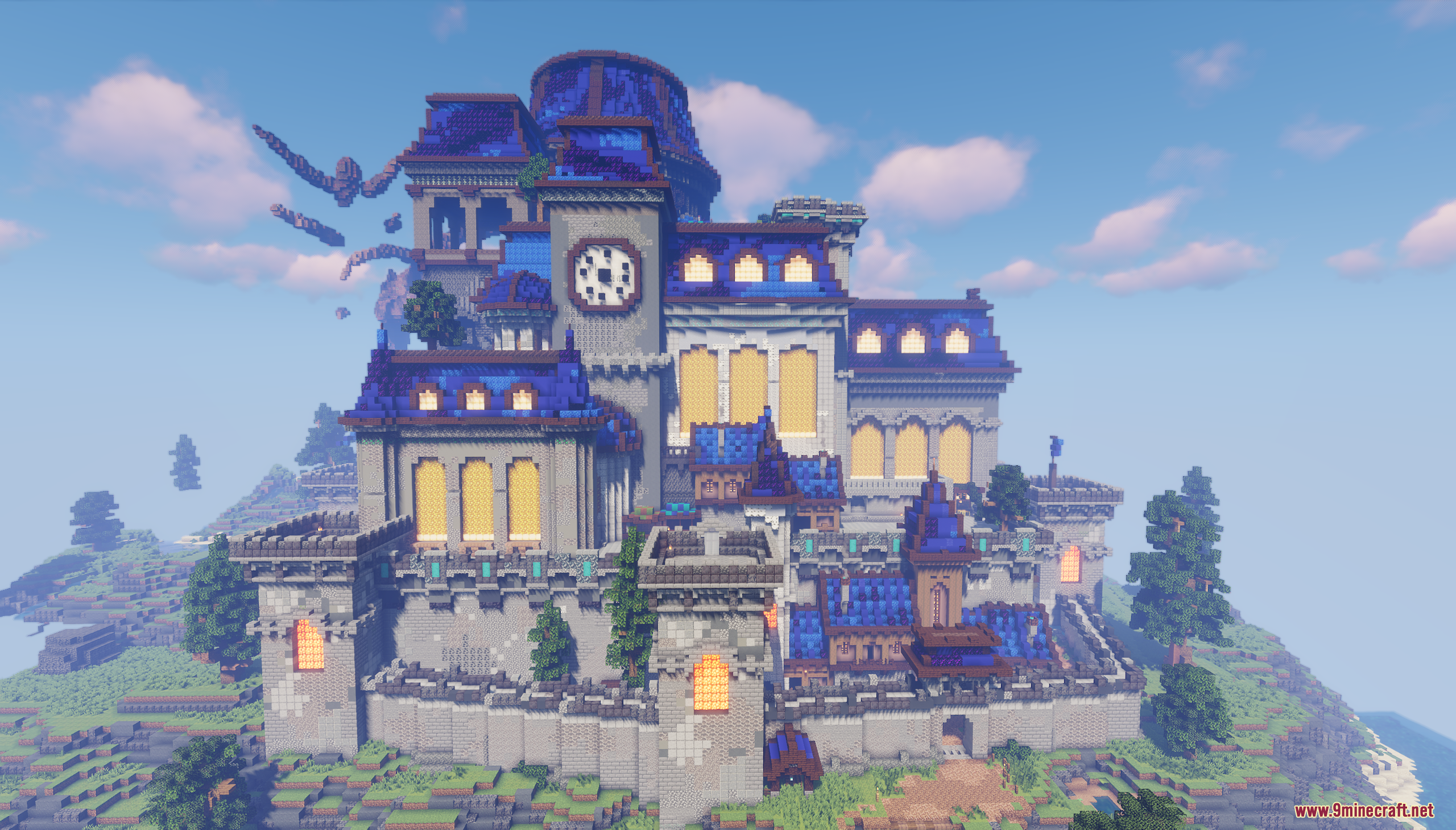 Castle Island Map (1.21.11, 1.20.1) presents a majestic fortress rising high above the water, blending medieval grandeur with fantasy elegance. Surrounded by fortified walls and detailed towers, the castle features glowing windows, intricate stonework, and vibrant blue rooftops that give it a magical presence. Perfect for exploration, roleplay, or establishing a royal survival base, this island stronghold offers both beauty and defense – a towering sanctuary fit for kings, adventurers, and dreamers alike.
