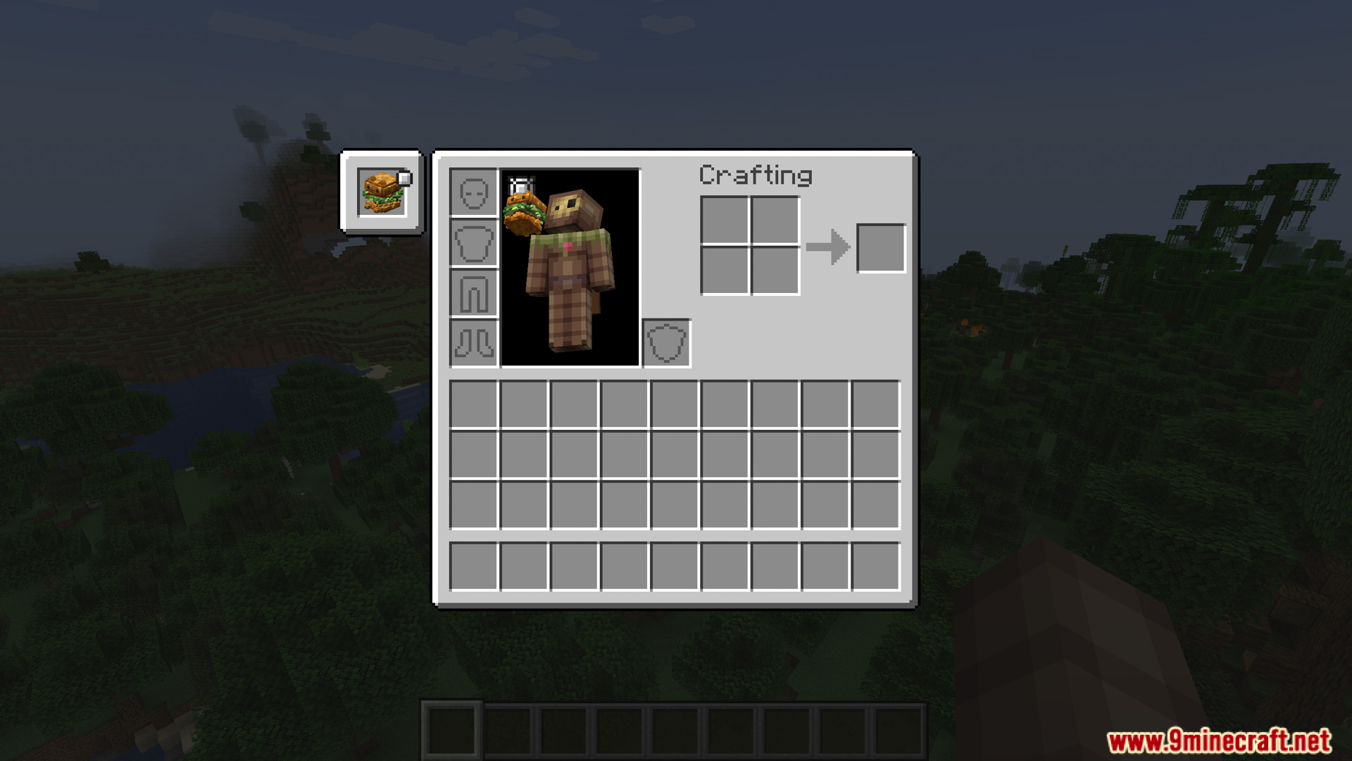 Cat Burger Mod (1.21.1, 1.20.1) adds a cat-shaped burger that floats next to the player like a pet in an RPG. It automatically restores 1 hunger point every 60 seconds (configurable) and triggers a Totem of Undying-like effect when critically damaged: instantly restores 20 HP and refills hunger + saturation (can also be toggled on/off).