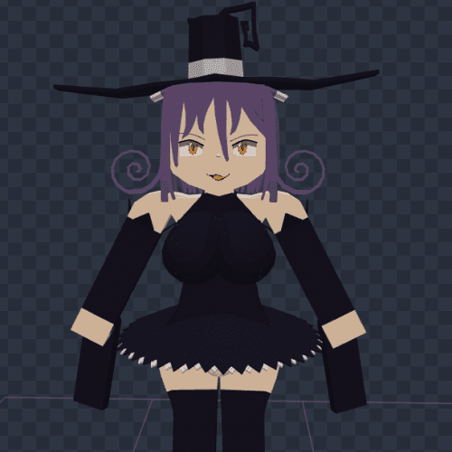 Halloween Blair Azu Jenny Mod Model replaces the default model with a Halloween witch anime-style design: purple curly hair, yellow eyes, wide-brim black witch hat, off-shoulder black dress with frills,…