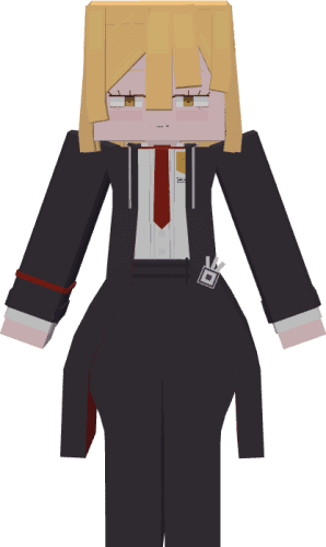 DOOOON Jenny Mod Model replaces blocky visuals with an anime-style design: blonde bob hair, orange eyes, pale skin, and a professional black suit with red accents (“office lady” vibe). DOOOON…
