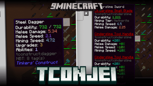 TConJEI Mod (1.20.1, 1.19.2) is a Just Enough Items add-on for the Tinker’s Construct 3 mod. This mod allows you to view the detailed stats and abilities of different Tinker’s…