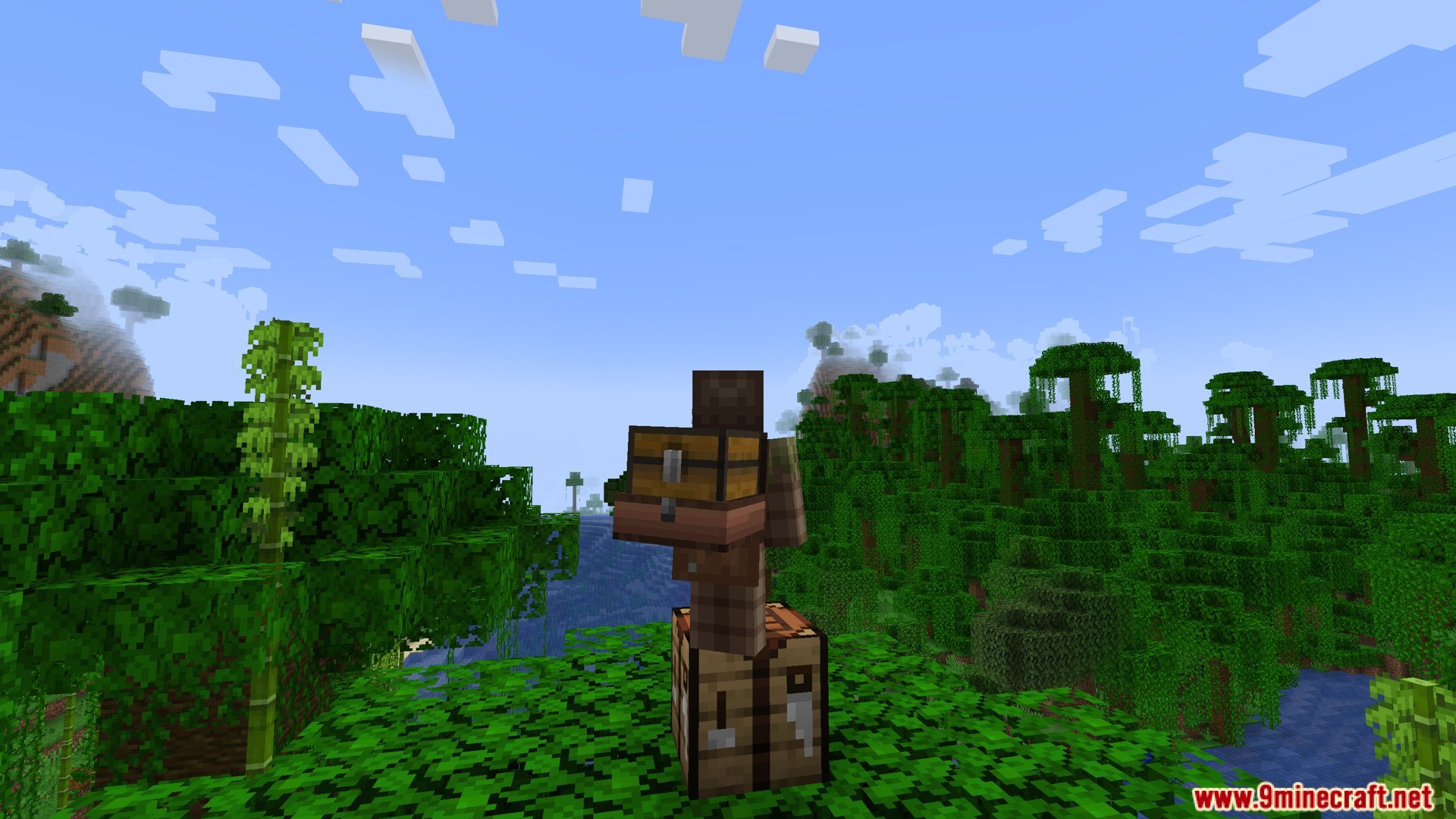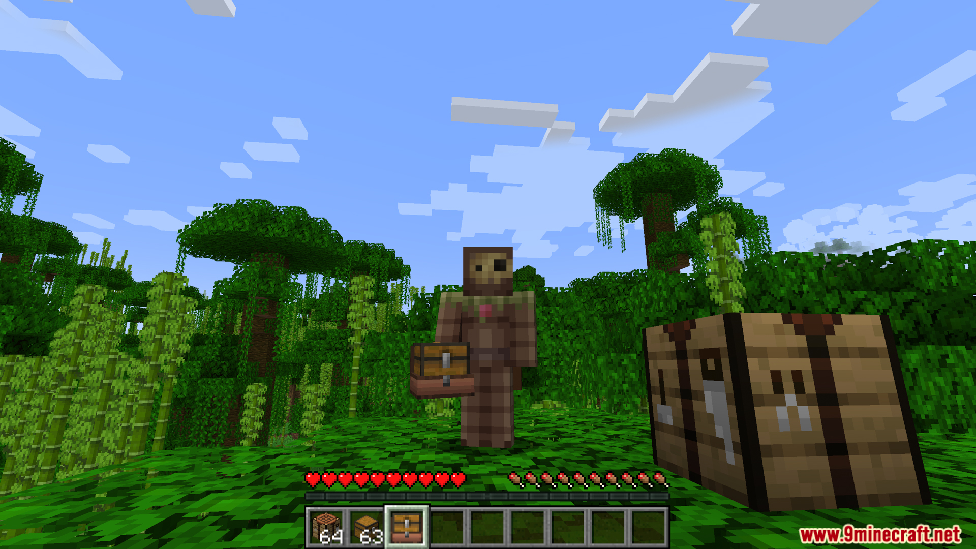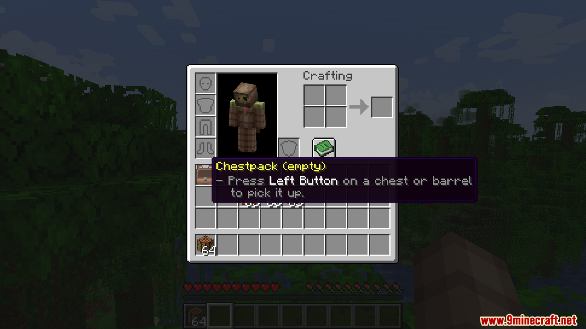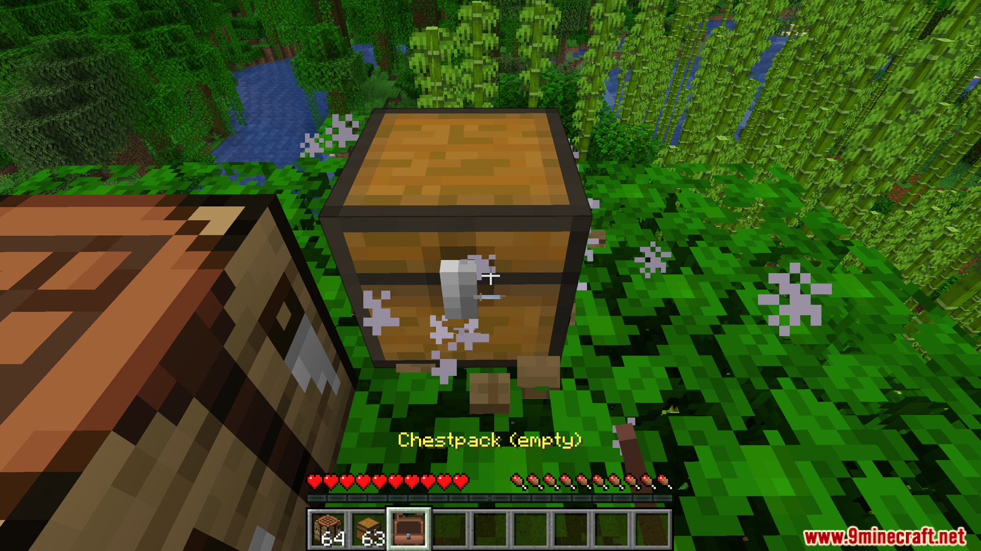 Chestpack Backpacks Data Pack (1.21.5, 1.21.1) adds chestpacks to the game, which help players carry around chests and easily access them while exploring.