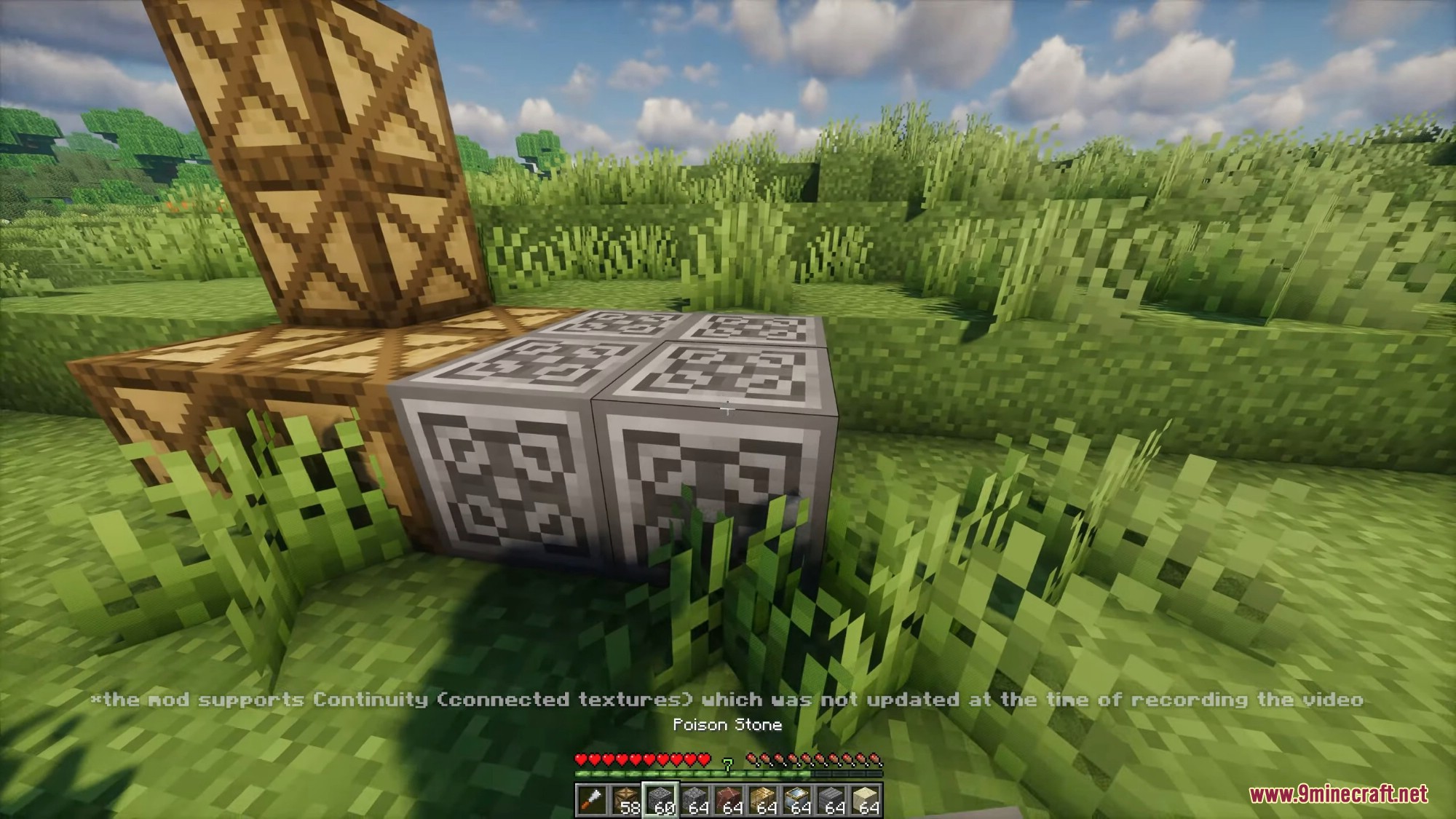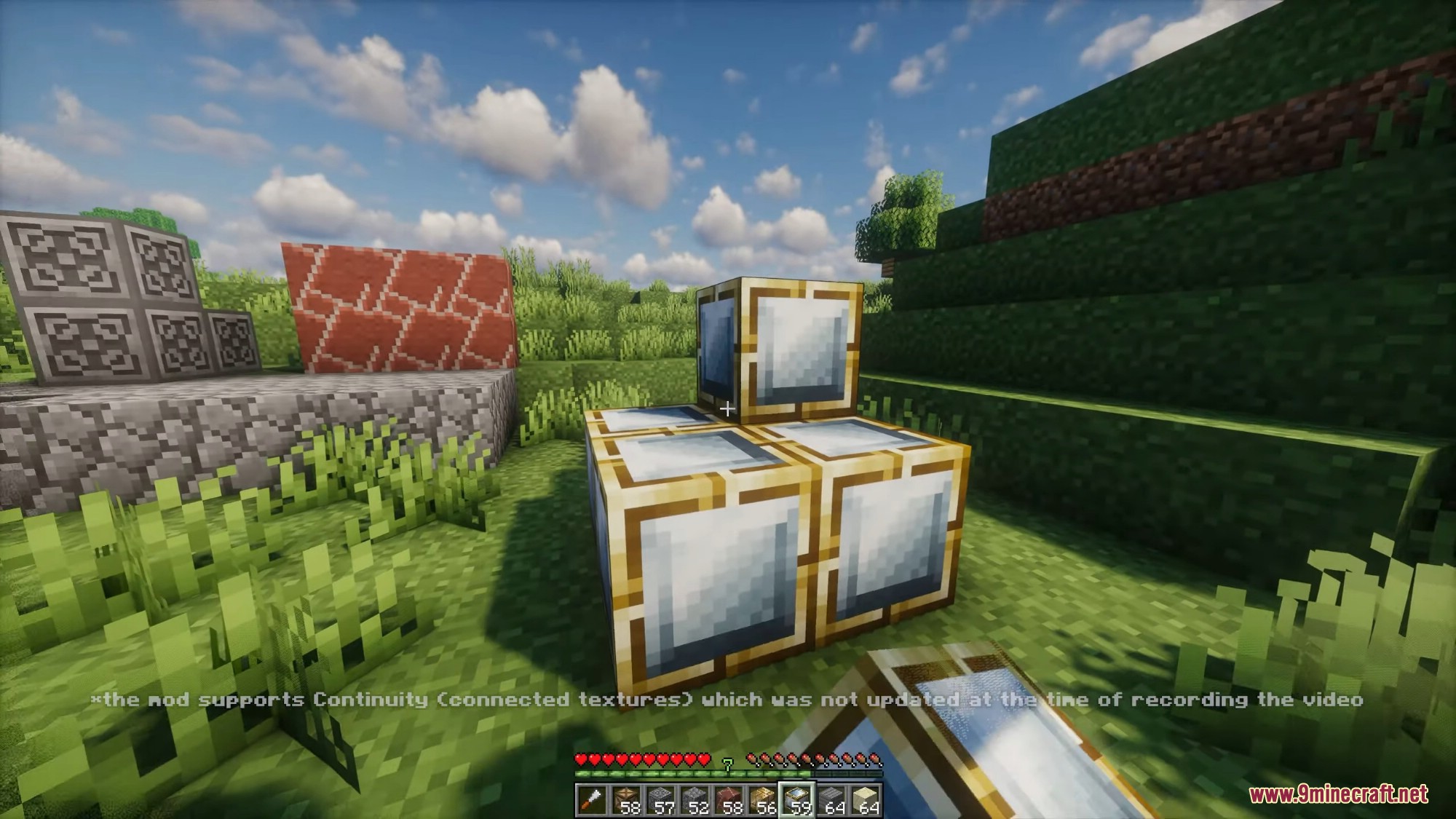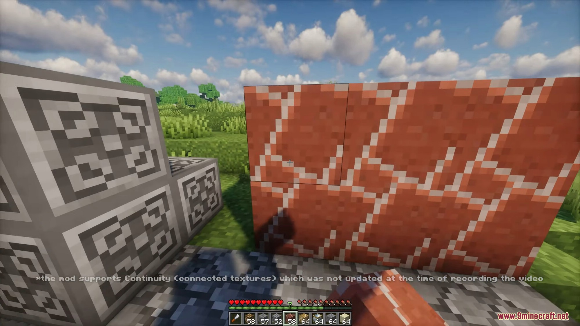 - Stone variants (andesite, diorite, granite, cobblestone, stone bricks, etc.), wood types, stained glass, terracotta, glowstone, netherrack, obsidian, sandstone variants, temple/mossy blocks, and many mod-provided blocks when supported.