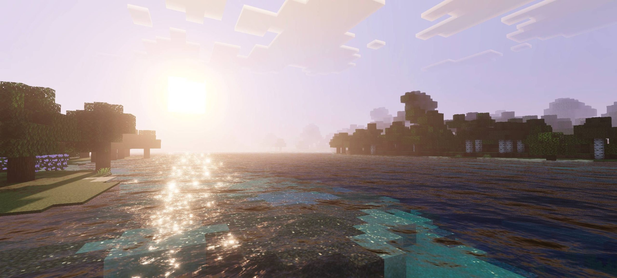 Cinematic Visual Shader (v26, 1.21) transforms images into a cinematic style. The most noticeable changes are at sunrise, sunset, and midnight. The water wave effect is more dynamic. The color and lighting processing system makes image details clearer.