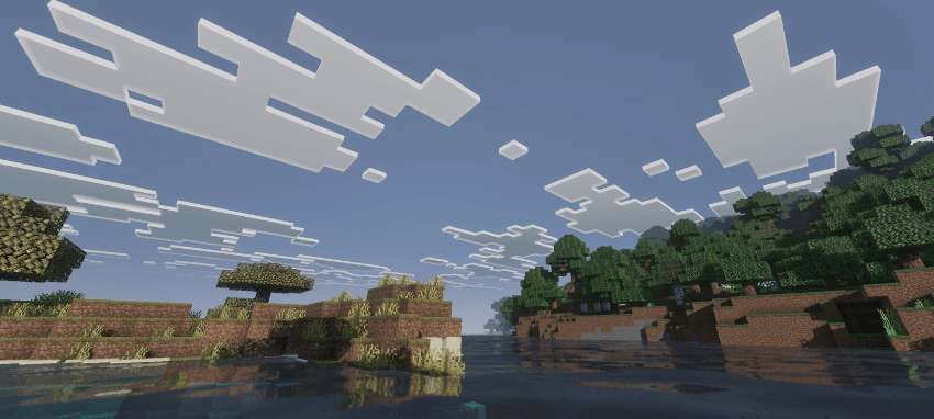 Cinematic Visuals Shader (1.21) focuses on cinematic lighting with vibrant colors, remastered water surfaces, treetop sunbeams, underwater caustics, and reflective material surfaces.