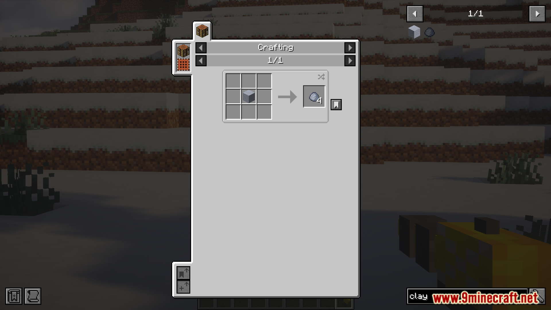 In the vanilla game, the only way to obtain clay is by finding them underwater on riverbeds and mining them manually. This can be boring and tiresome. Clay And Brick Recipe Rework Mod (1.21.1, 1.20), as the name suggests, reworks the recipes for clay and clay related components in the game. These new recipes allow you to craft them from items that are much readily available. Take a look at the screenshots below to see the new reworked recipes.