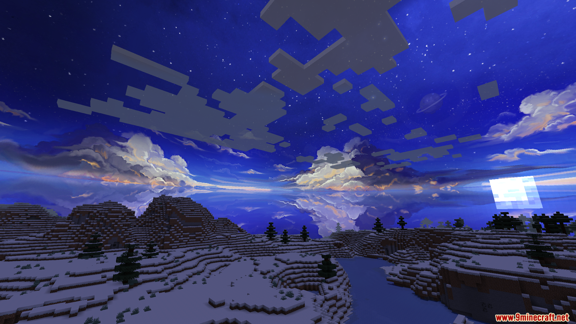 Clouds & Planets Resource Pack (1.21.11, 1.20.1) replaces the vanilla sky with realistic clouds and planetary visuals, creating a more immersive and cosmic atmosphere.