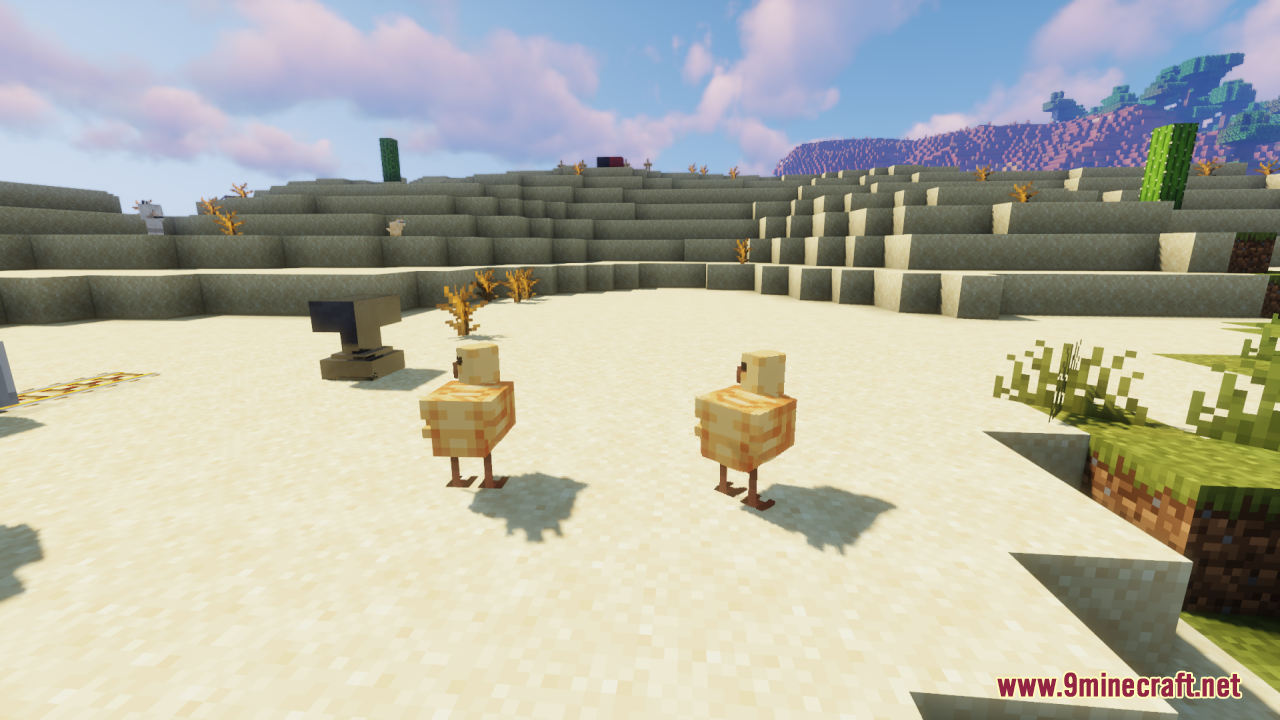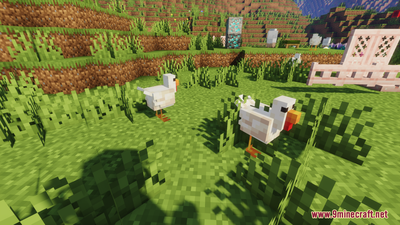 Clukin’ Chicks Resource Pack (1.21.11, 1.20.1) refreshes the look of baby chickens by giving them cuter, more detailed, and more expressive textures while keeping their original behavior and animations. Instead of the plain vanilla look, baby chicks now appear with bigger eyes, fluffier bodies, and an overall more adorable aesthetic that stands out in flocks and makes farm areas feel more lively and heartwarming. In general, it is perfect for players who love small but delightful visual upgrades to their world’s animal life.