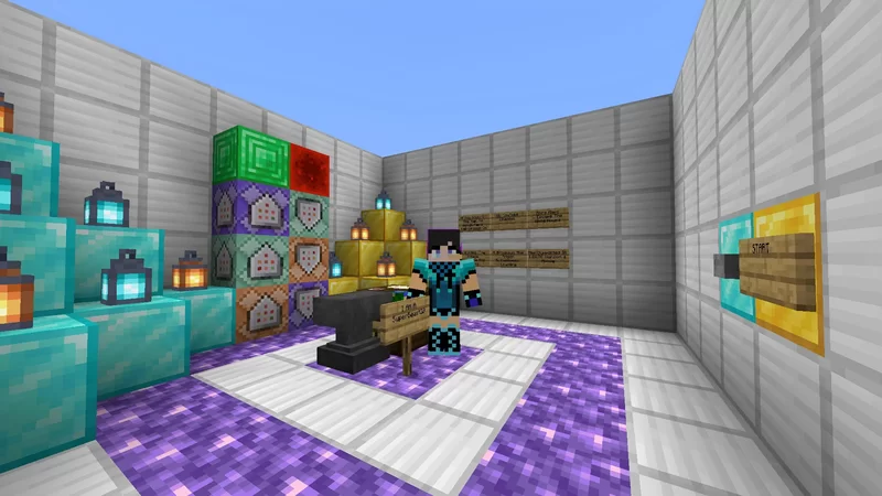 Color Cubes Map (1.21, 1.20) challenges the player’s intelligence. In this map, players will have to craft items, trade with villagers and solve puzzles in each room. In addition, there is a simple parkour section to relax before entering the big challenge. After completing the first 11 rooms, the 12th room – Boss Room – will be unlocked, where you need to use the Netherite sword with Sharpness V to continue the journey.