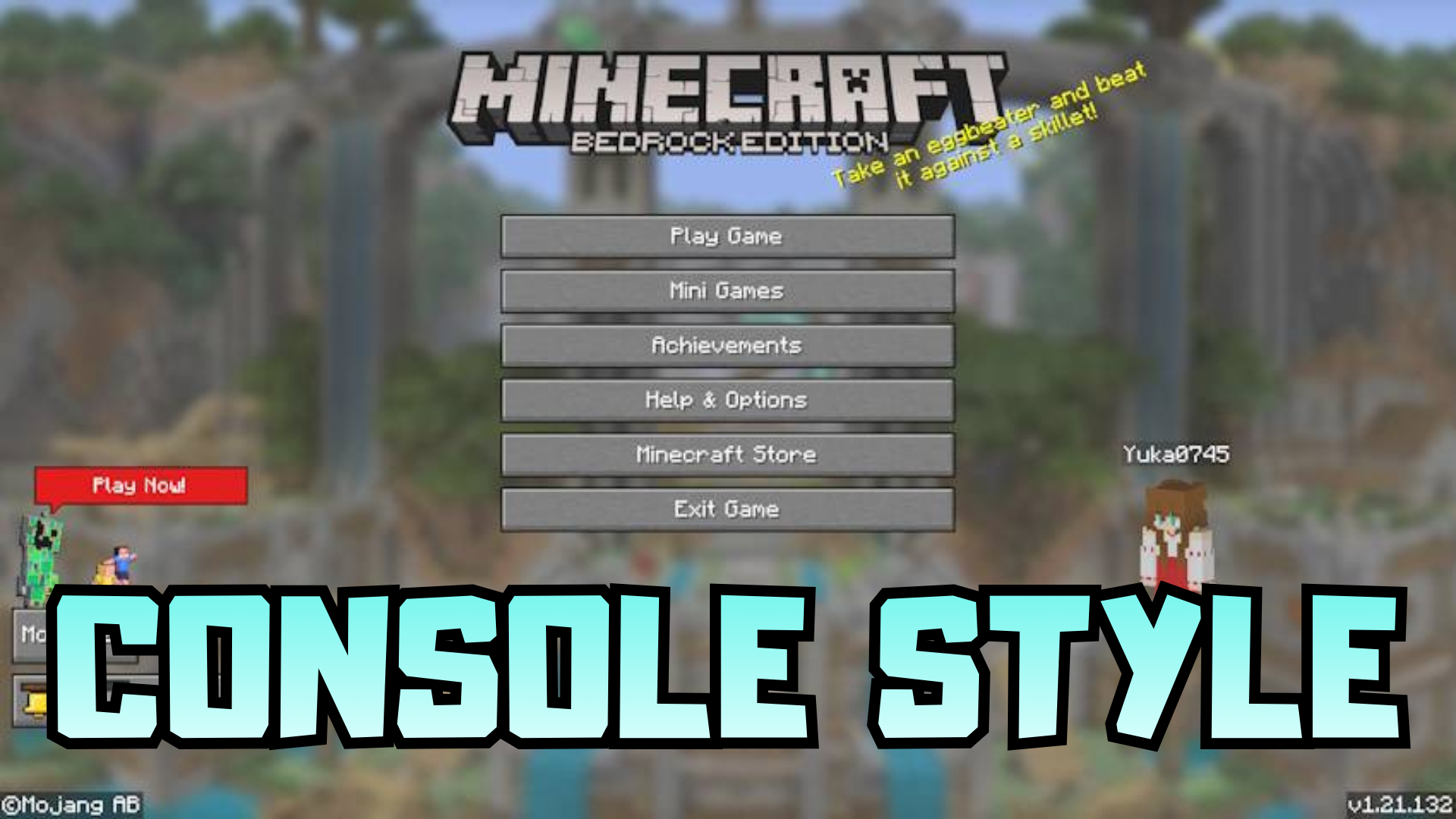Console Style Texture Pack (1.21) changes the visuals of the Bedrock version to resemble the interface on consoles like PS3, PS4, and Xbox. Item names when repairing with an anvil are changed to orange. The loading screen instructions are set to resemble the Wii U. The sound effects when the character takes damage, falls from a height, or uses an anvil are also changed to a handheld console style.