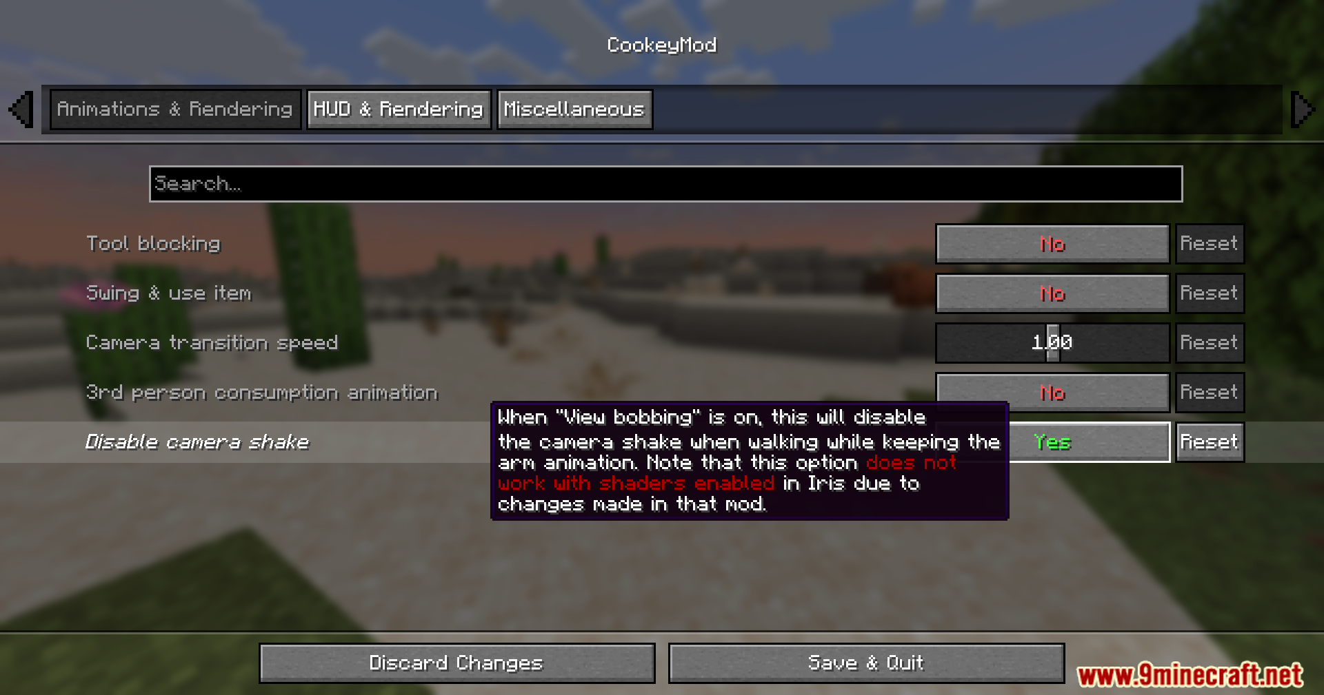 - Option to disable camera shake while keeping hand bobbing active.