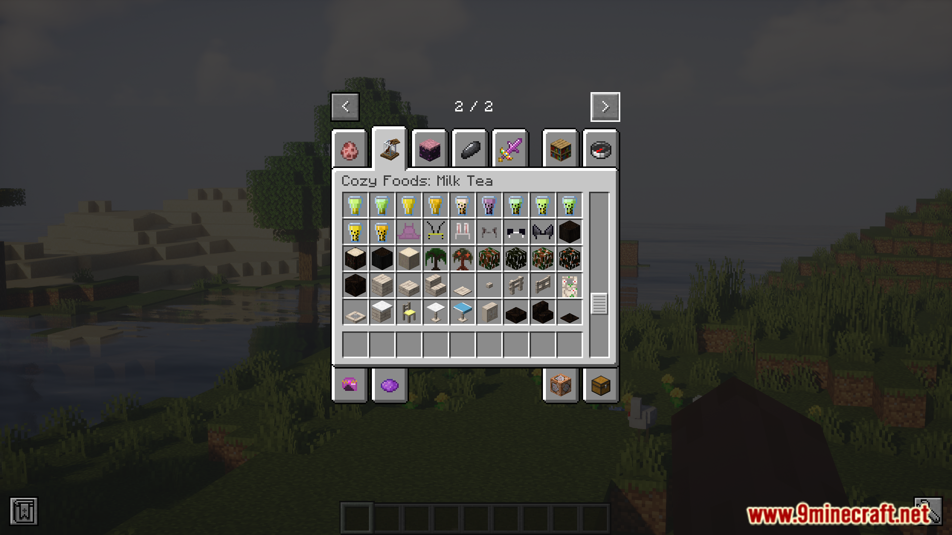 Cozy Foods Milk Tea Mod (1.21.1, 1.20.1) is a food mod that introduces all the items you would ever require to build a tea stall in the game. This ranges from kitchen utensils like blenders and pots, to tables, chairs and cabinets. The mod also includes an element of farming as well. Two new trees are introduced – Mango and Lychee. Both of these trees have their own saplings, wooden sets, etc. The mod also introduces some wearable cosmetics into the game.