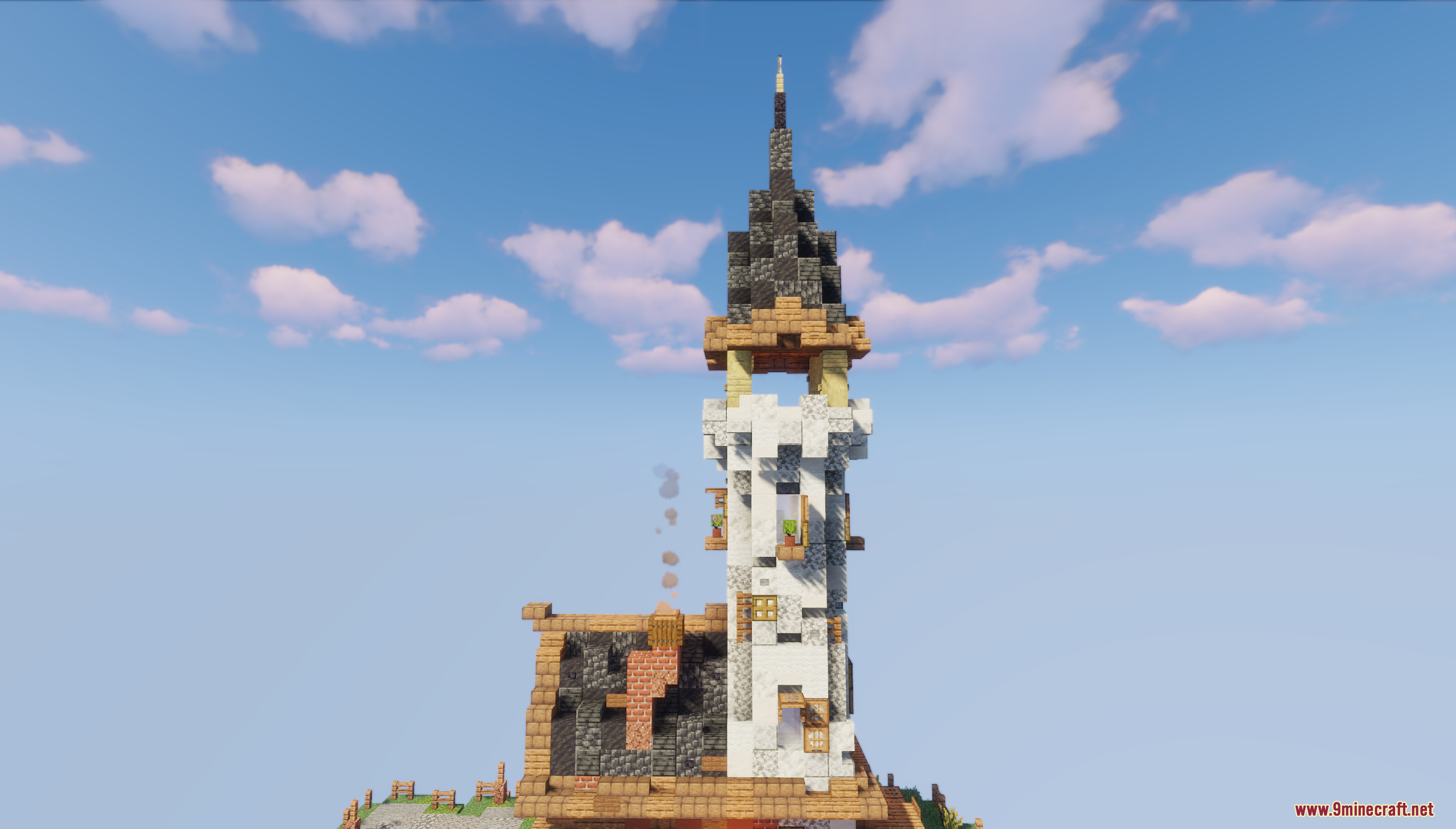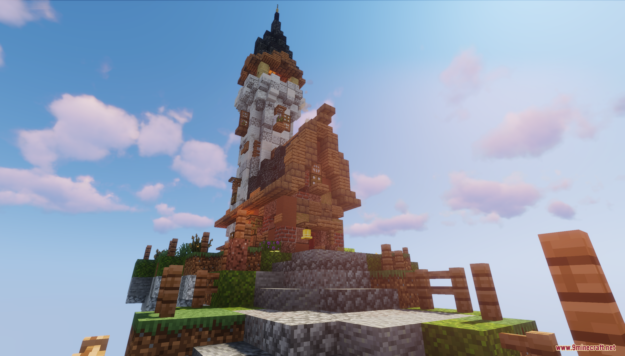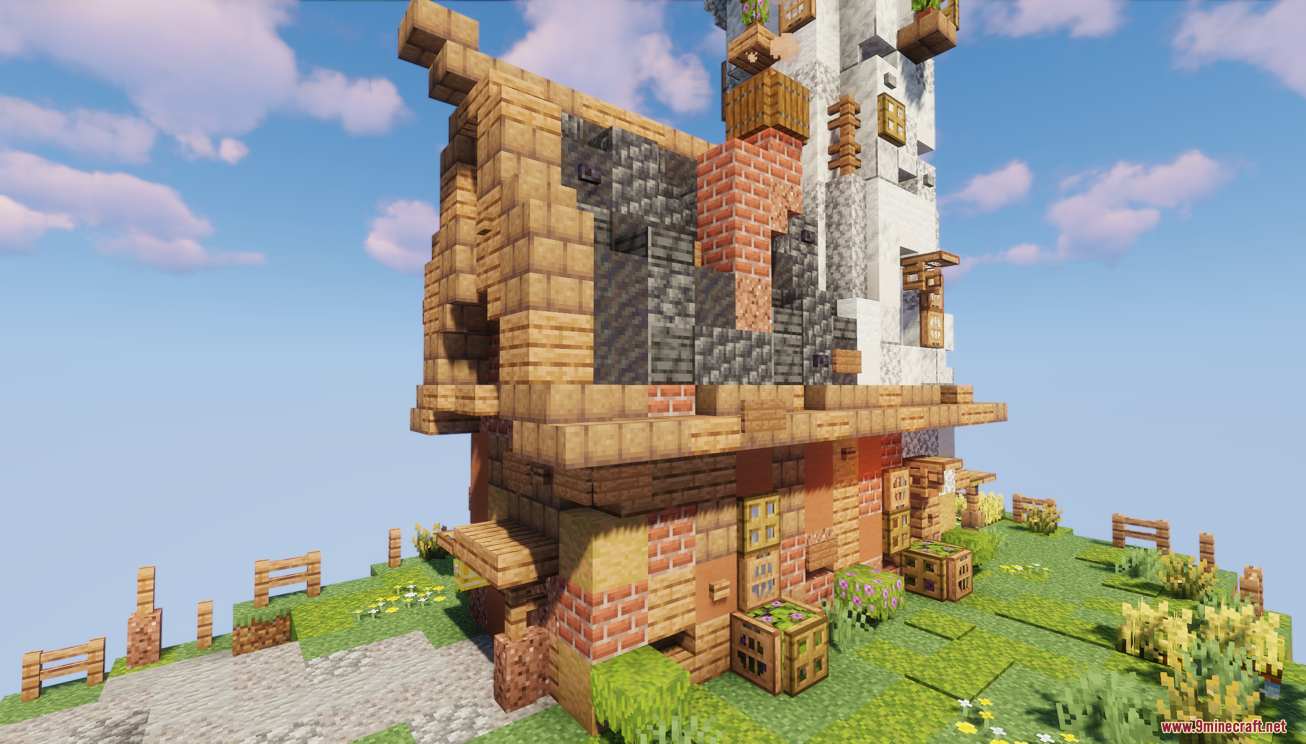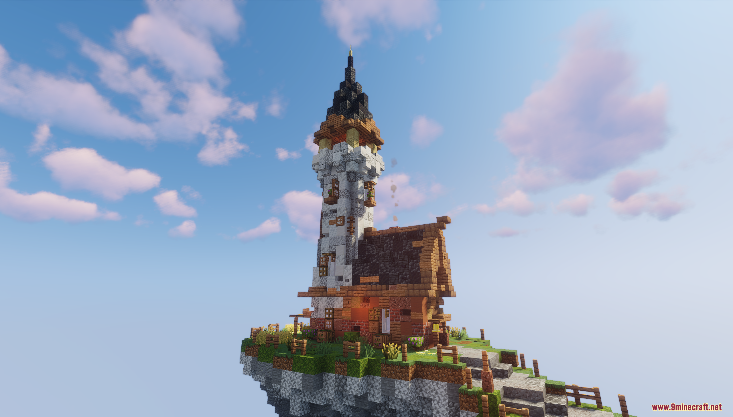 Cozy Tiny House Map (1.21.10, 1.20.1) sits on its very own floating island high above the clouds, offering a warm and inviting escape in the sky. This charming build features a fully detailed exterior, a cozy interior, and a tall, whimsical tower that rises from the island’s rocky base. Surrounded by greenery, fences, and peaceful sky views, it’s the perfect spot for players who love magical floating homes and compact, atmospheric builds.