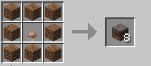 - Red or brown mushroom in the center, dirt in all other slots.