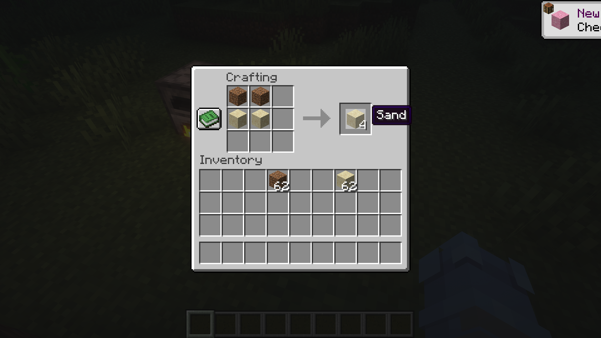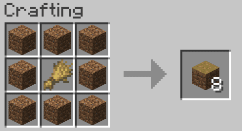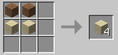 - Two dirt blocks and two sand blocks combined.